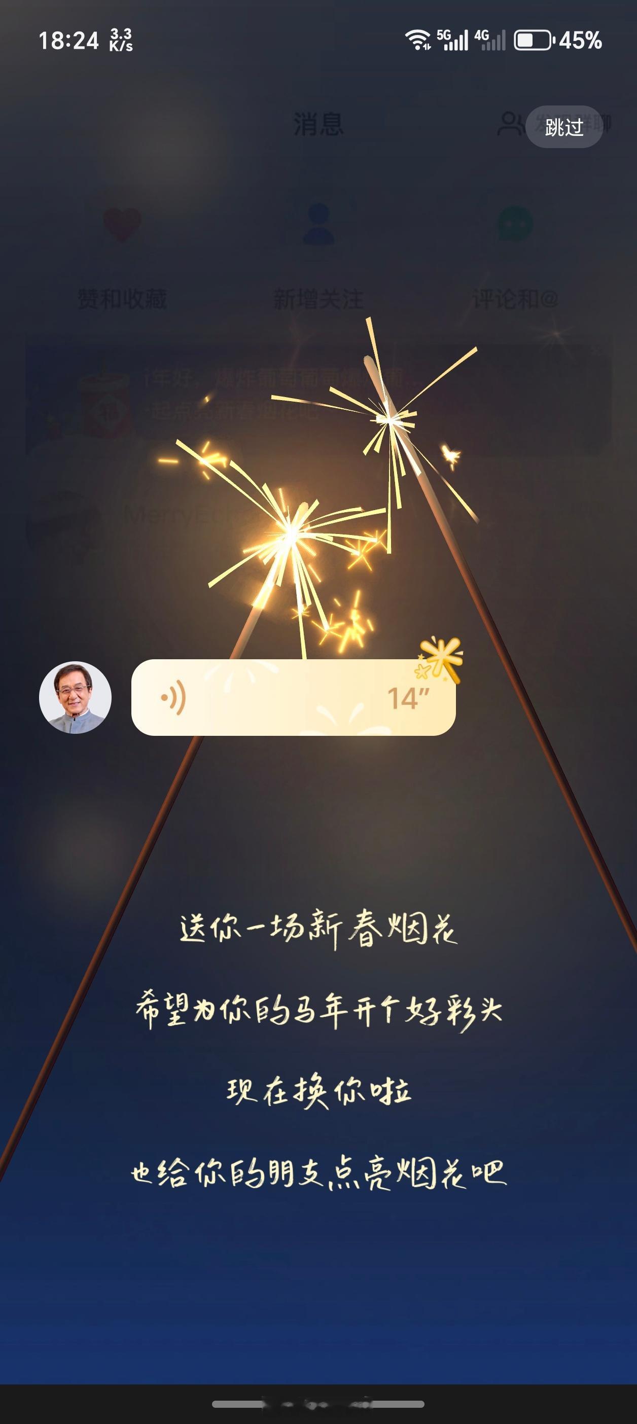 小红薯还搞了个烟花界面,还有成龙大哥的新年拜年祝福,情绪价值拉满了。