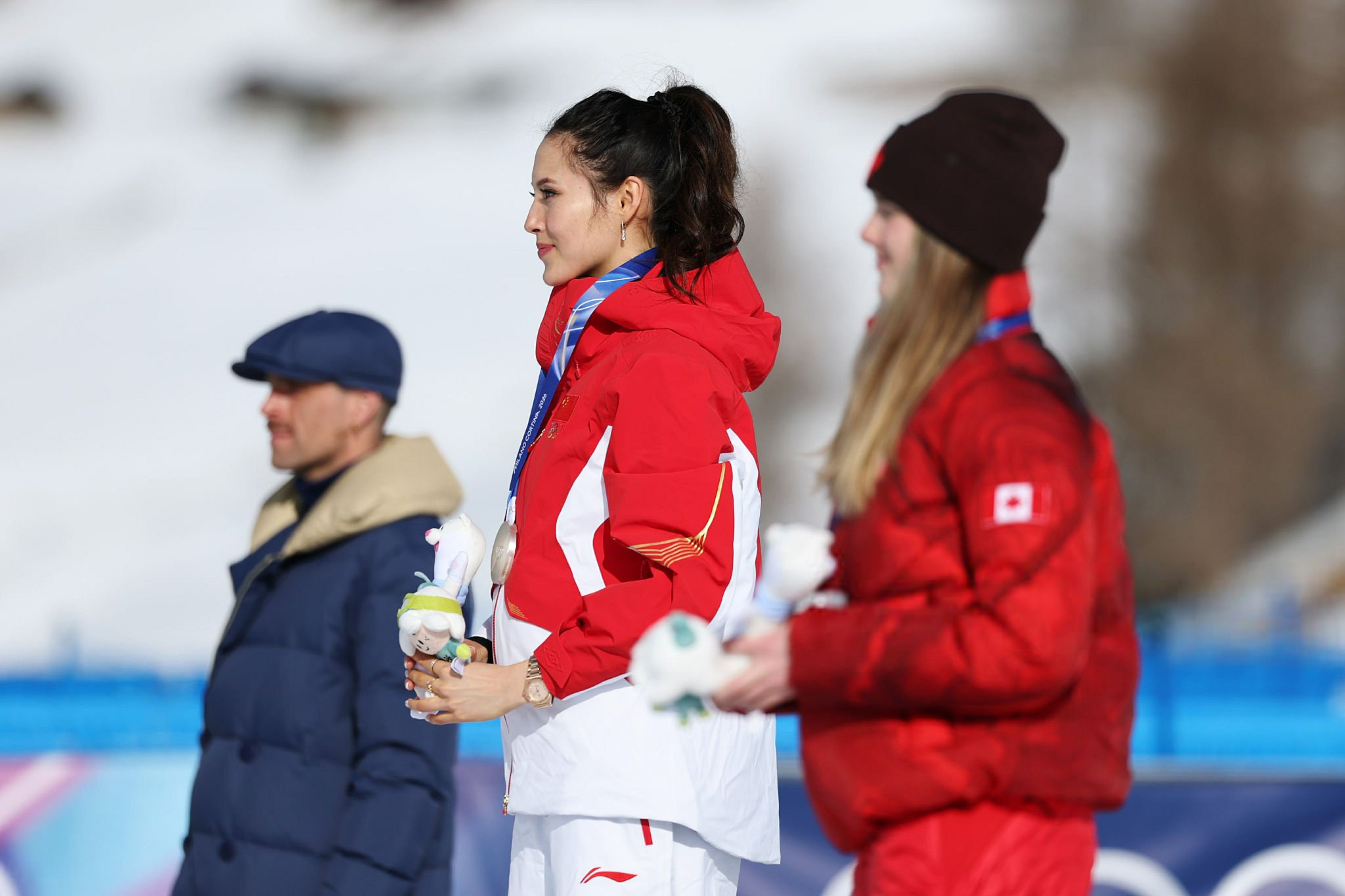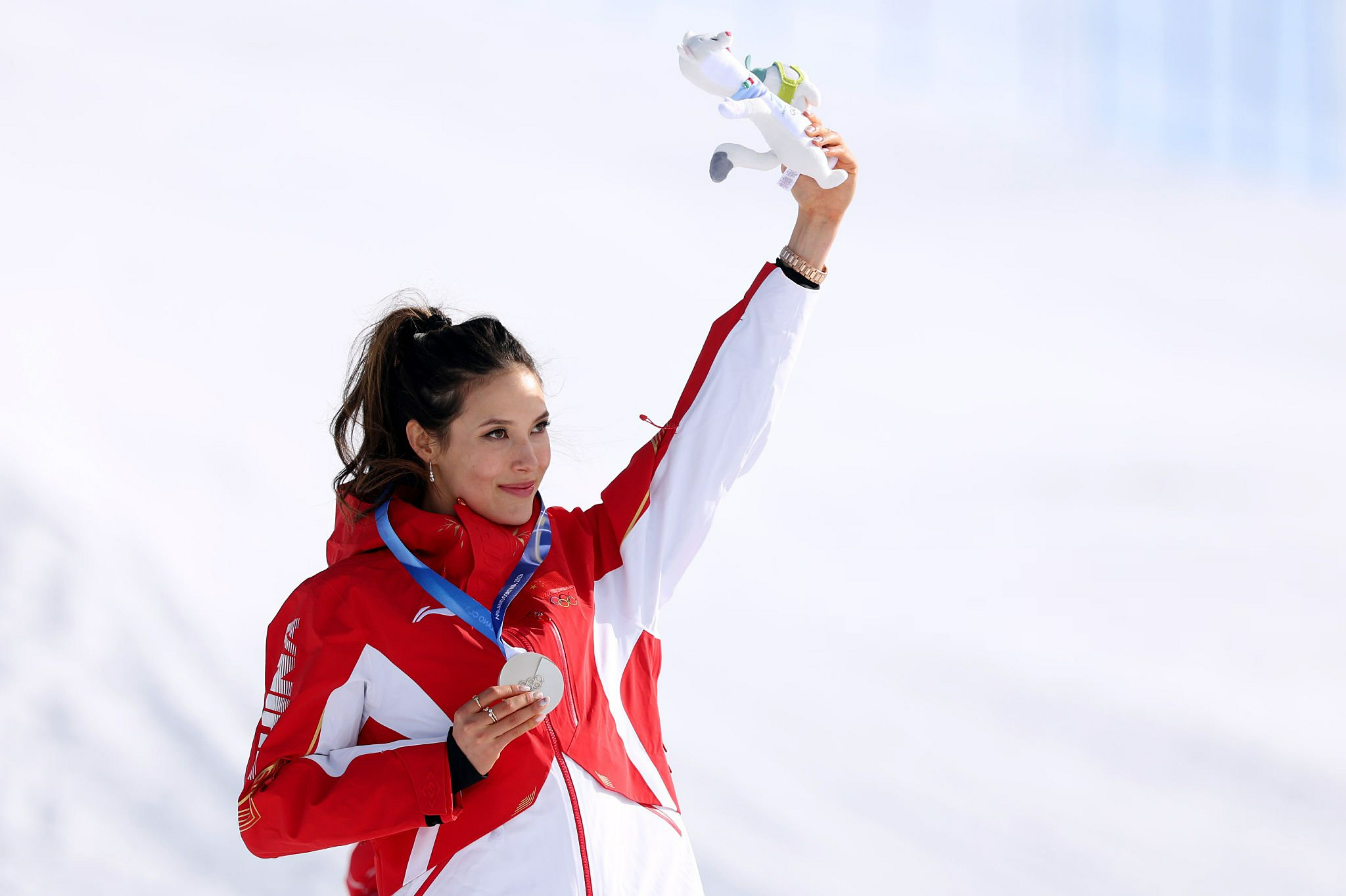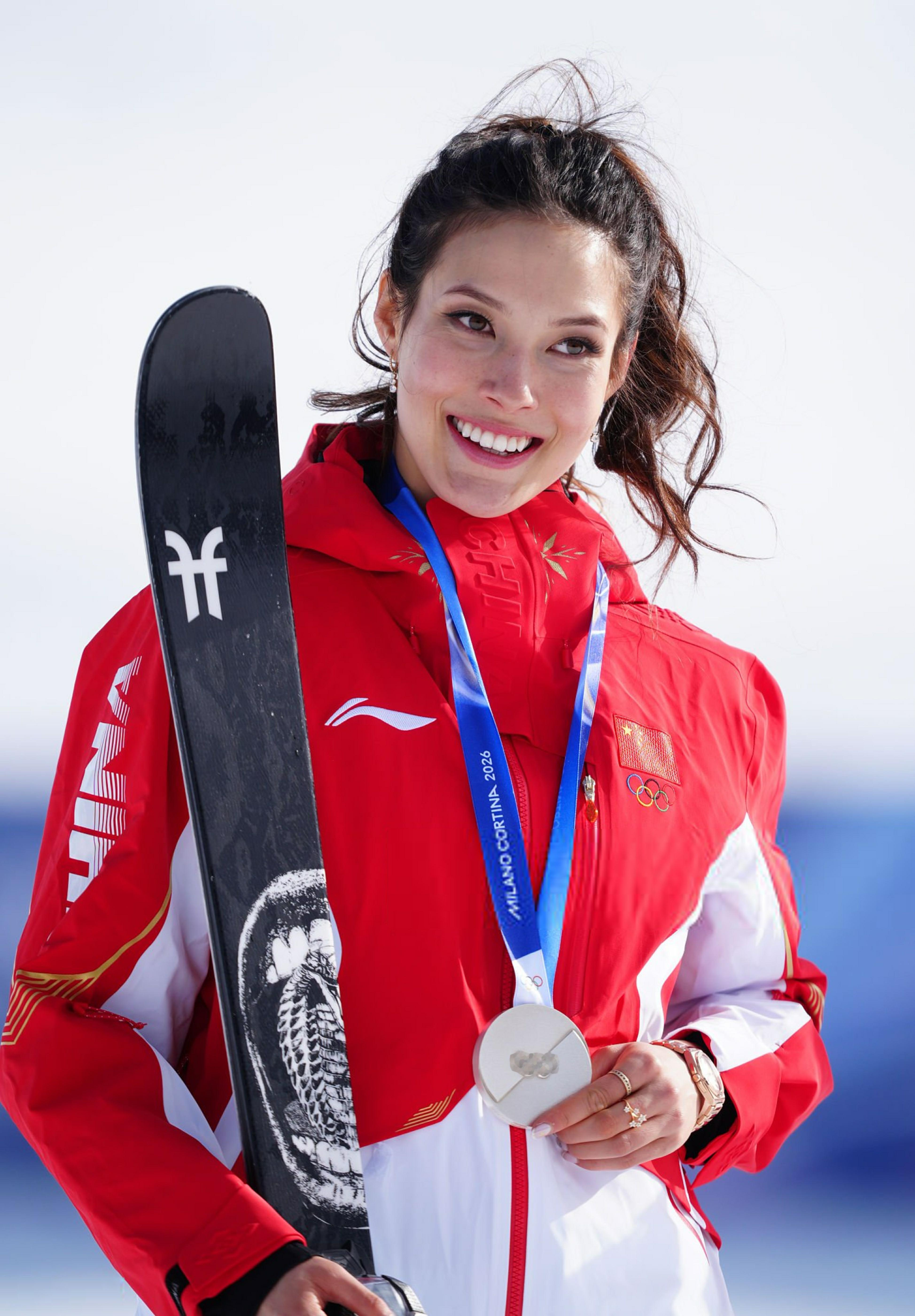 谷爱凌冬奥银牌谷爱凌决赛谷爱凌登上米兰冬奥会自由式滑雪女子坡面障碍技巧领奖台银牌