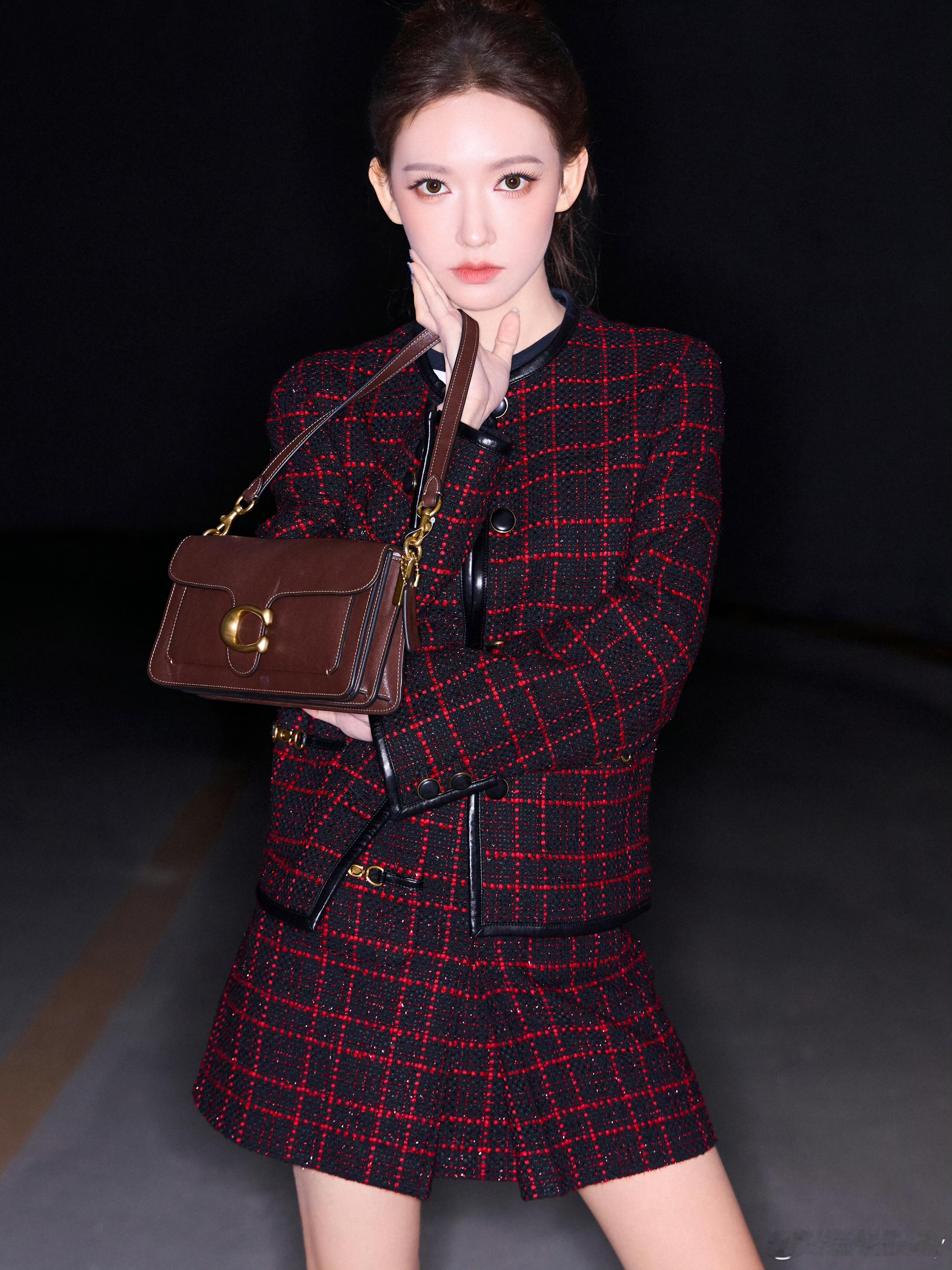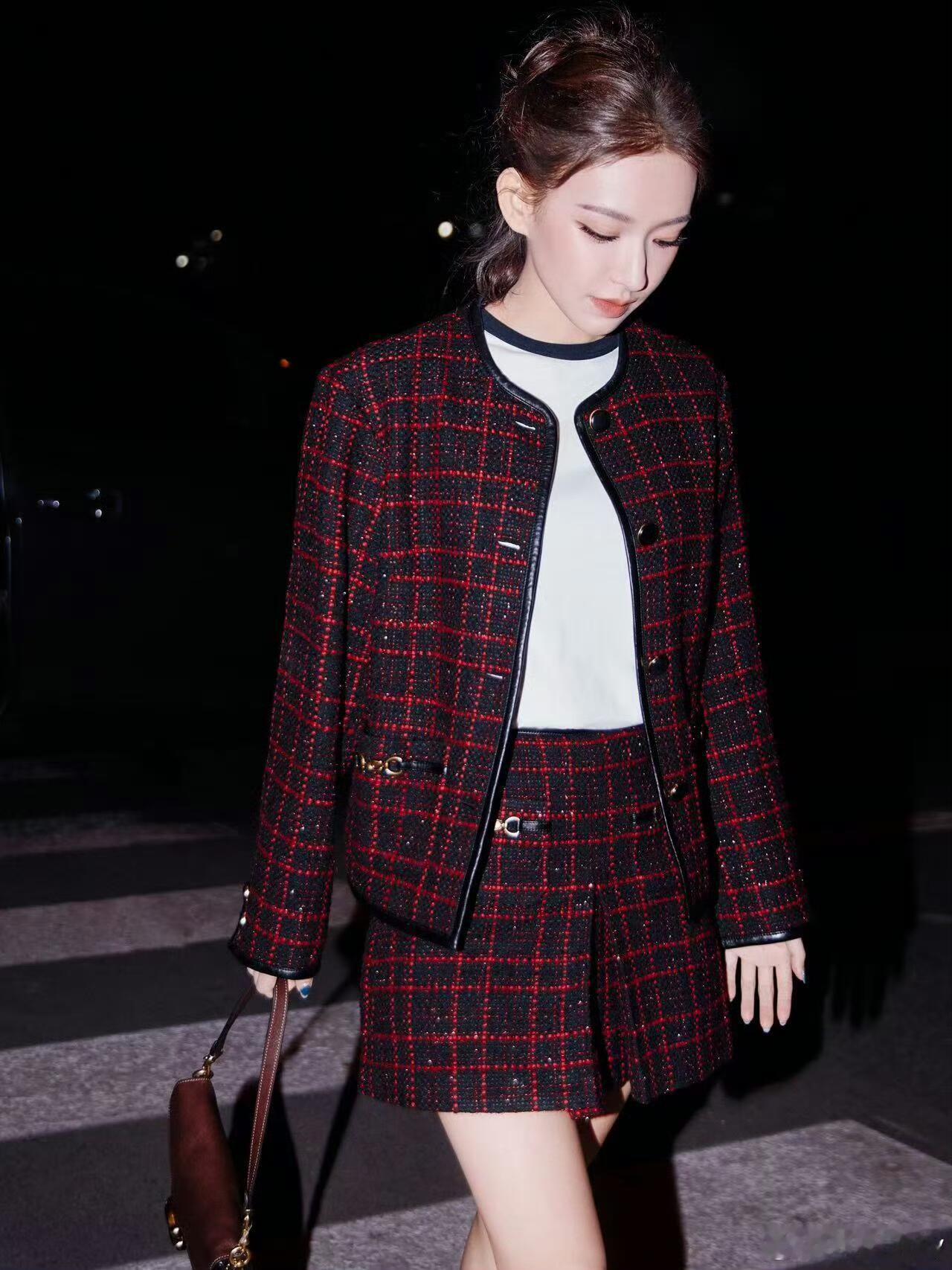 时装周 |纽约时装周 程潇纽约时装周出发图,以COACH眼镜品牌代言人身份奔赴秀场。红黑粗花呢套装利落矜贵,咖色经典眼镜点睛造型,高盘发配慵懒碎发,清透妆容勾勒精致眉眼。复古优雅碰撞美式街头,将矜贵气质与都市摩登完美交融,步履间自带高光,静待秀场闪耀时刻。