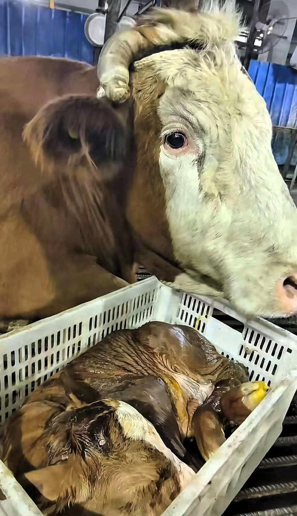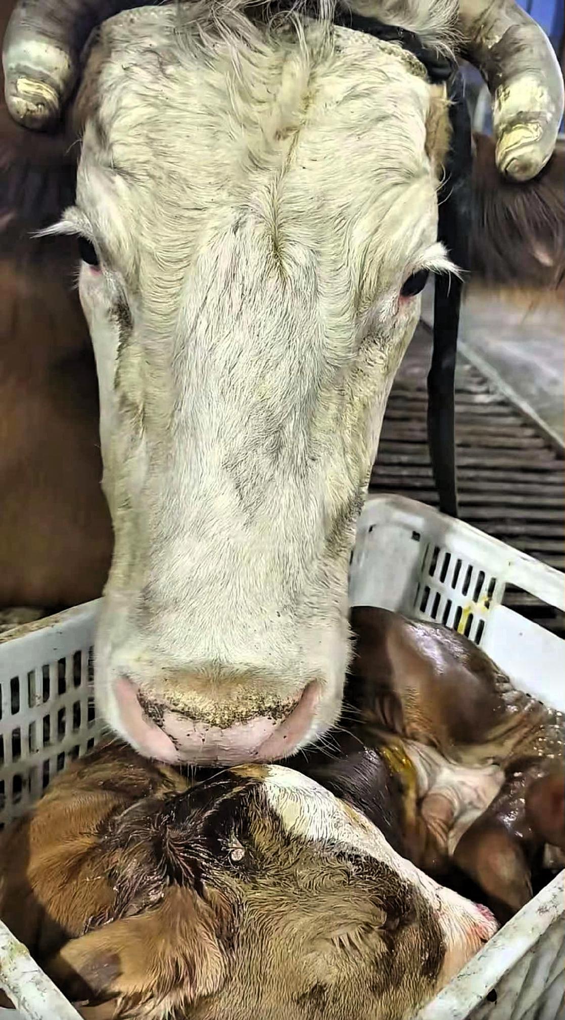 这头牛妈妈刚被送进屠宰场,努力的生下了牛宝宝,在和小牛温存片刻后,最后舔了舔牛宝宝,还是被送进了屠宰车间。 现场不少人看到后都很同情,希望能留下这头母牛,可养殖场老板也有难处,直言这头牛价值一万五,如果有人愿意出钱,就可以把牛带走,不然只能按流程处理。类似的情况在这个行业里并不少见,差不多每周都会遇到一两次,从业者也早已习以为常。 客观来说,屠宰行业有自己的运营规则和成本考量,经营者需要维持正常运转,单纯用情感去要求对方,也并不现实。但母牛护犊、不舍幼崽的样子,是最本能的情感表达,眼神里的无助和温柔,很容易触动人心,也让在场的人都感到无奈和心酸。 其实想要减少这样让人难受的场景,并不需要复杂的改变,关键在于前端的检查工作。在牲畜运输、进场之前,只要多做一步简单检查,及时发现怀孕的母牛,提前分流处理,就能避免临盆母牛被送入屠宰场的情况。这样做既可以减少牲畜的痛苦,也能让整个流程更规范,还能避免大家看到揪心的画面。 行业要讲效益,这是正常的生存逻辑,但多一份细心,多一道检查,并不需要增加太多成本,却能让经营更有人情味,也更符合大家对规范生产的期待。理性经营和基本的善意并不冲突,把细节做到位,既不影响行业运转,也能少一些让人遗憾的场面。