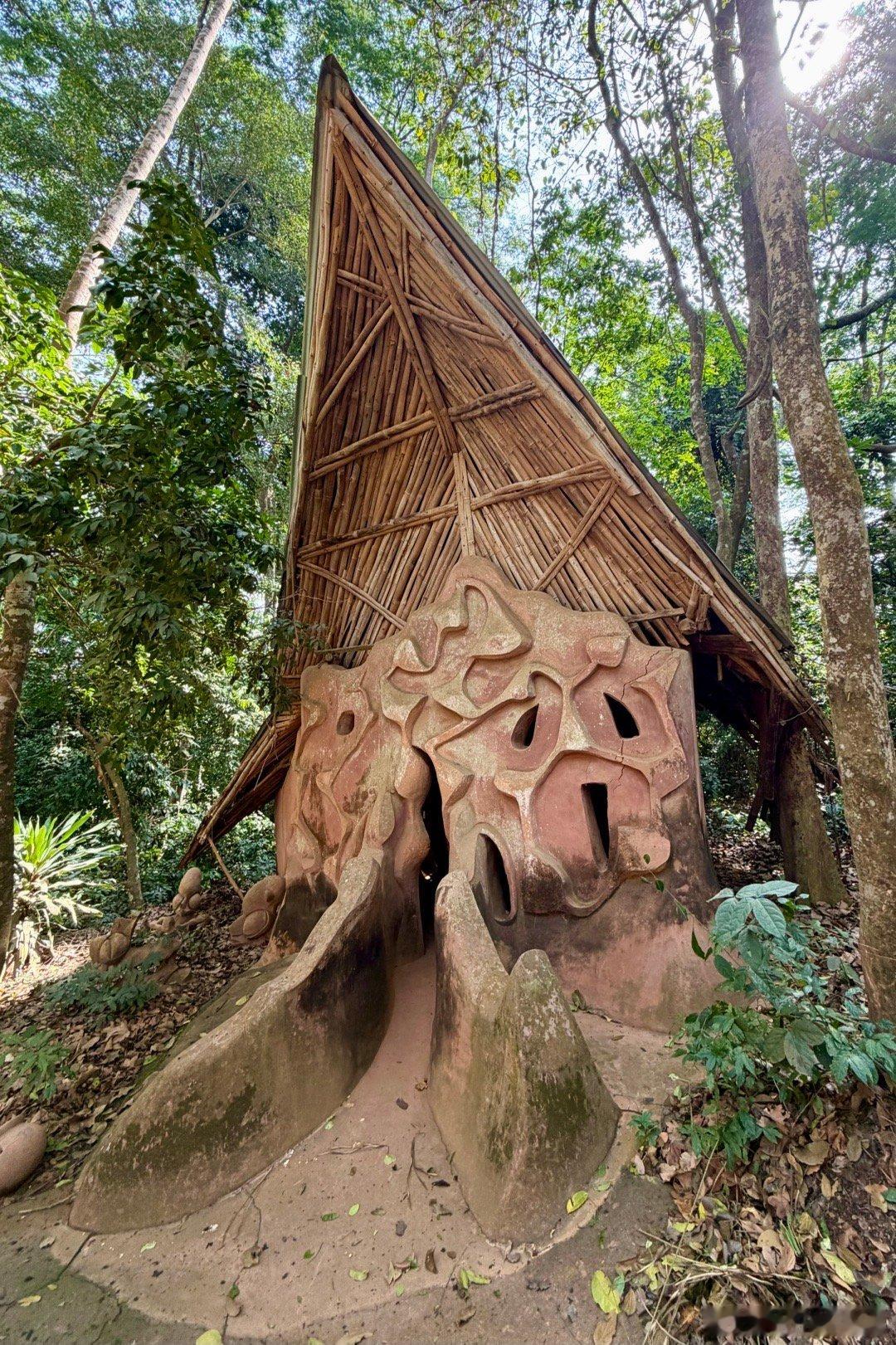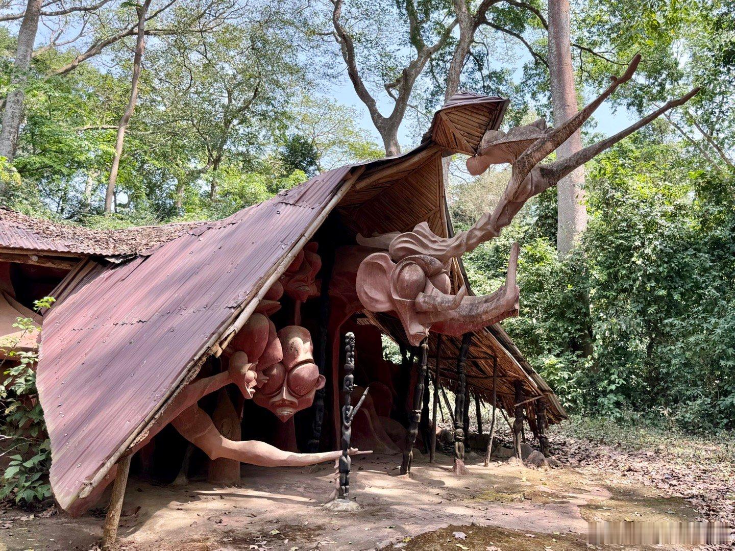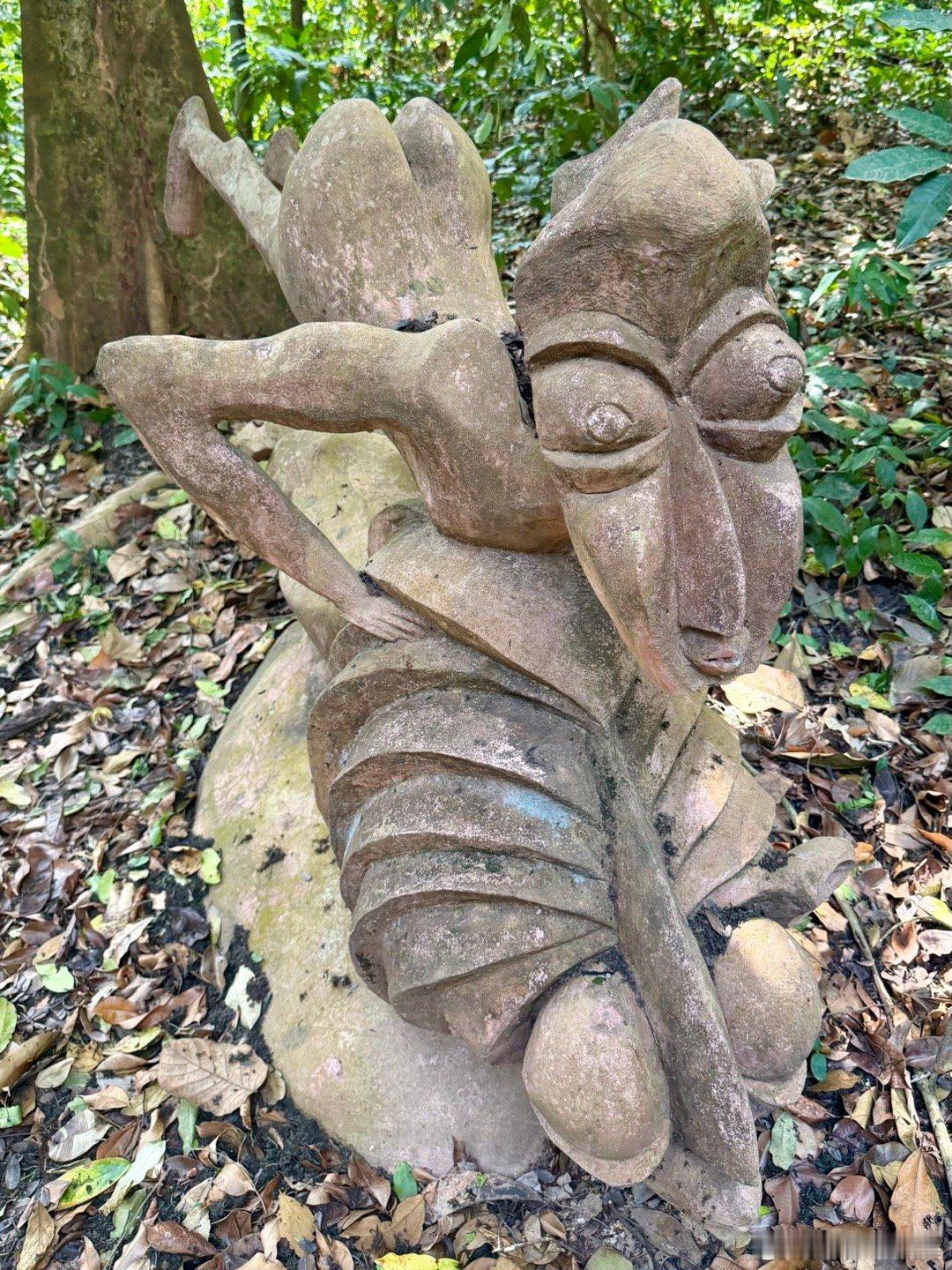1950年代,奥地利女艺术家Suzanne Wenger被本地祭司接纳,成了约鲁巴文化的女祭司,她发起了“新神圣艺术运动”,用水泥、铁、回收材料修复破损神龛、宫殿,并在森林中创作了40多座大型雕塑与建筑,如巨型拱门、鸟形神龛、蛇形桥、拟人化宫殿入口等,这些作品融合了古代神话与现代抽象艺术,形成的雕塑森林既保护了物质遗产,又复兴了精神传统,就是外星人风格太浓厚了。