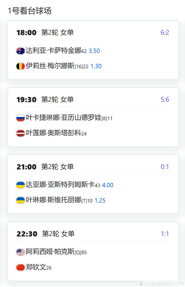 王欣瑜被安排在中心号球场第3场比赛,北京时间准点18:30