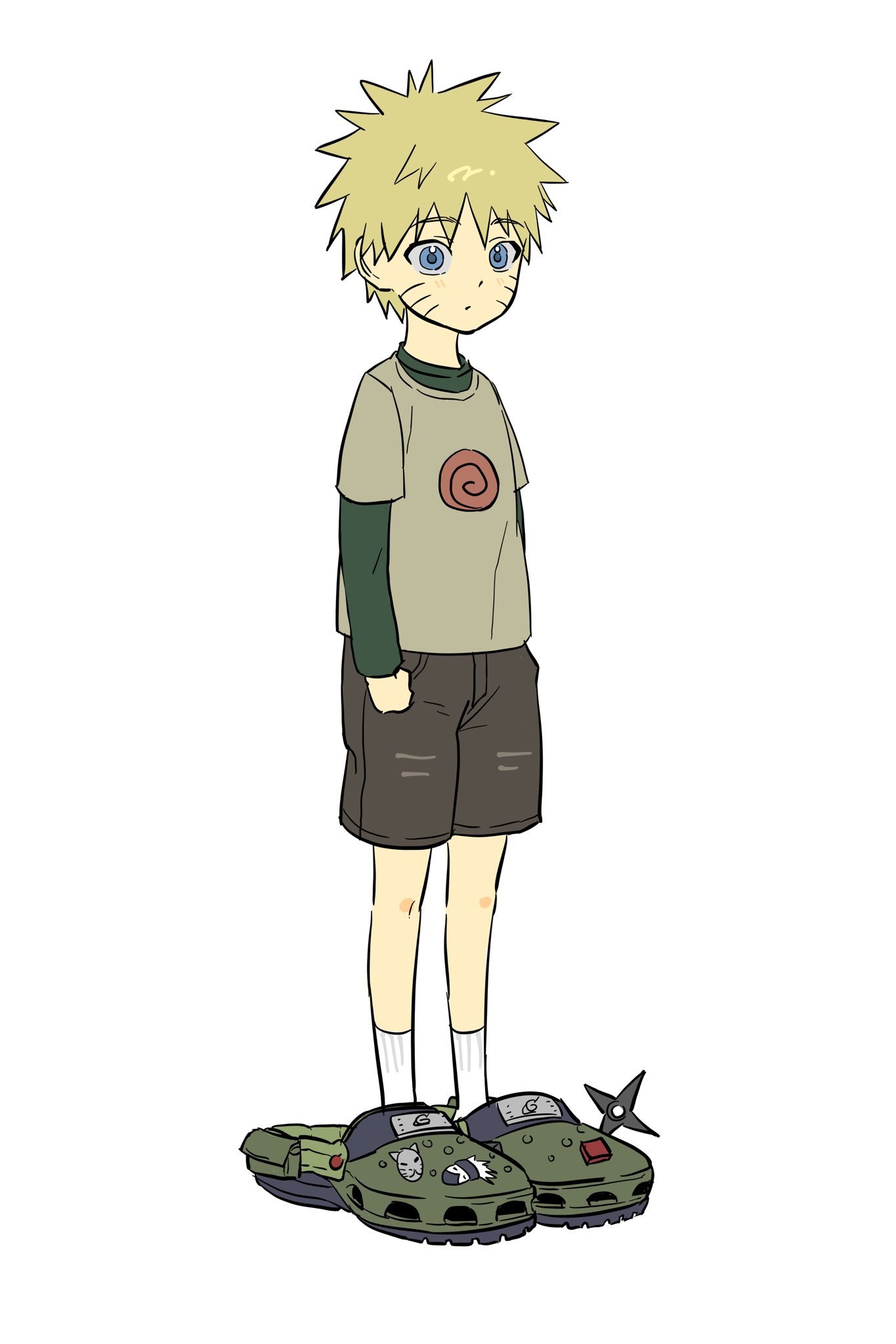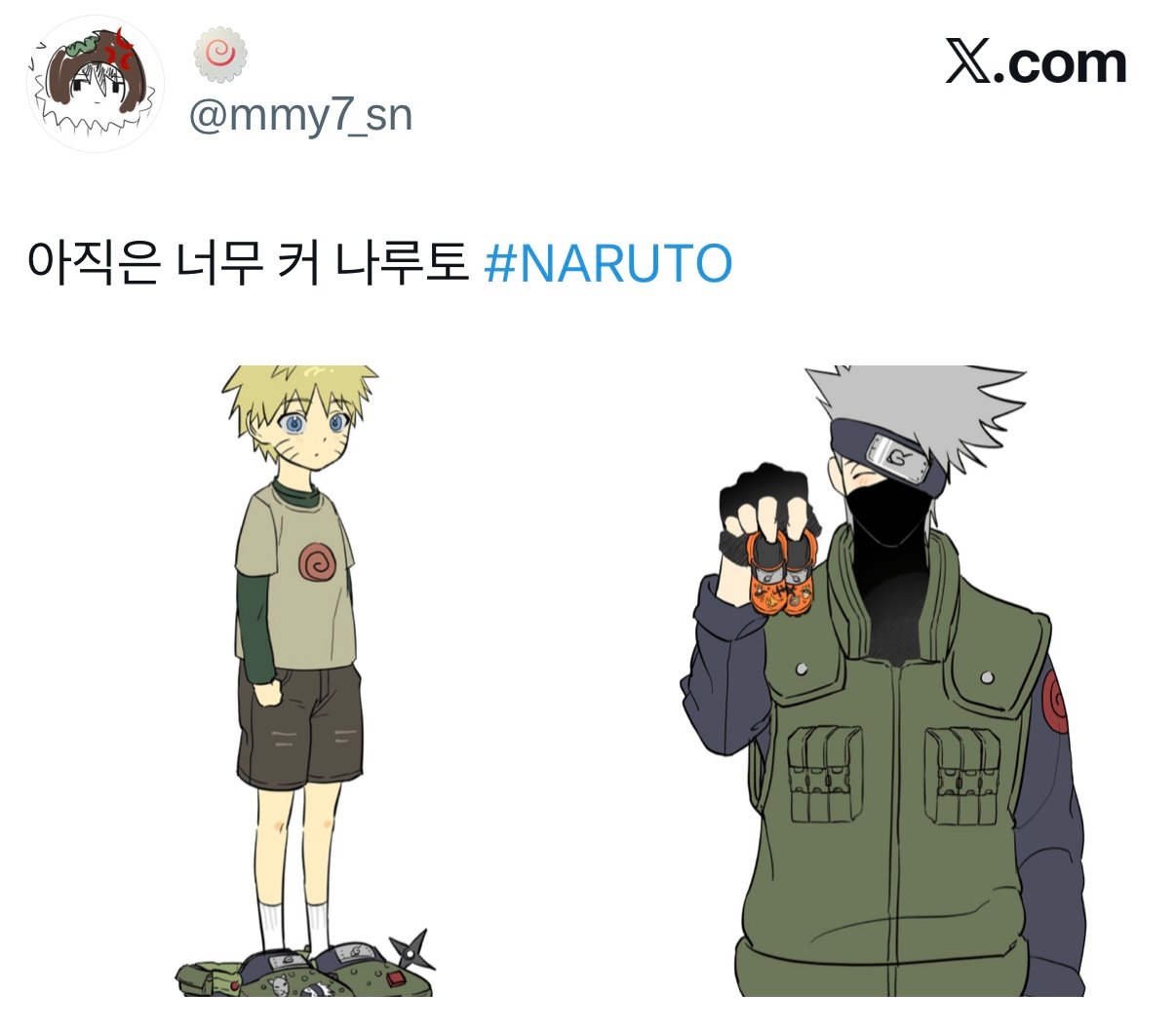 看来卡卡西老师的拖鞋对小鸣人来说还是太大了