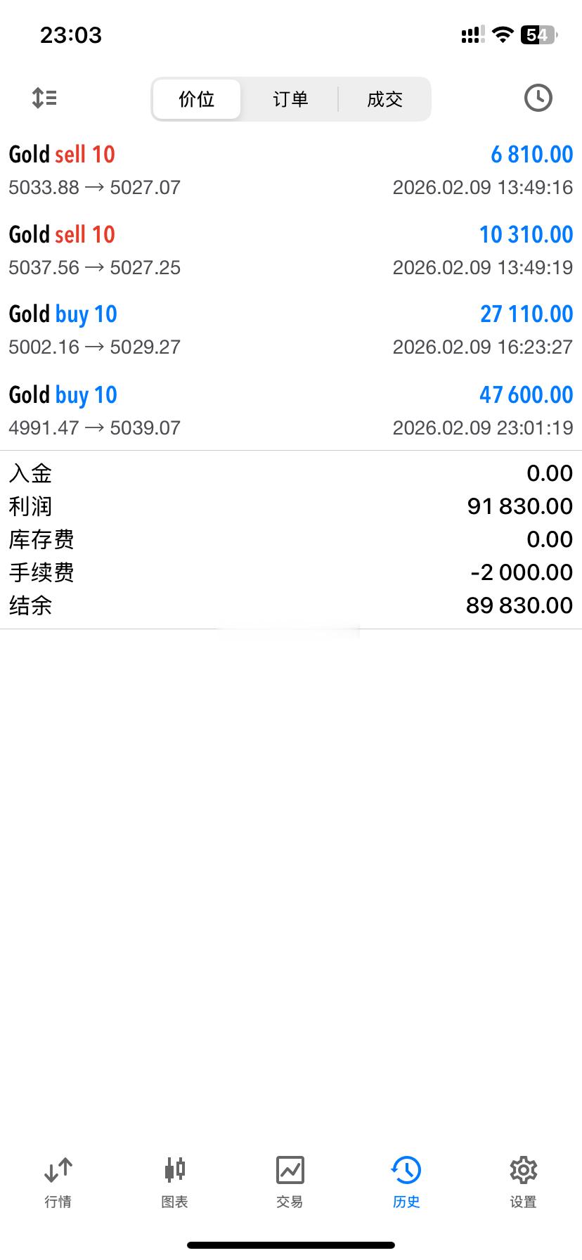2026.2.9日操作3单,全胜!共收割2210个点,真正成功的人生,不在成就大小,而在于你是否努力地去实现自我,发出属于自己的声音,走出属于自己的路!今天到此收工,晚安。黄金金价晚安