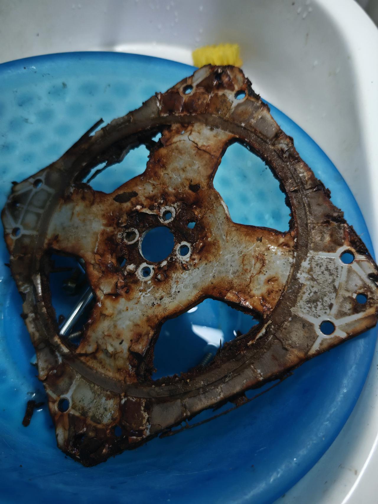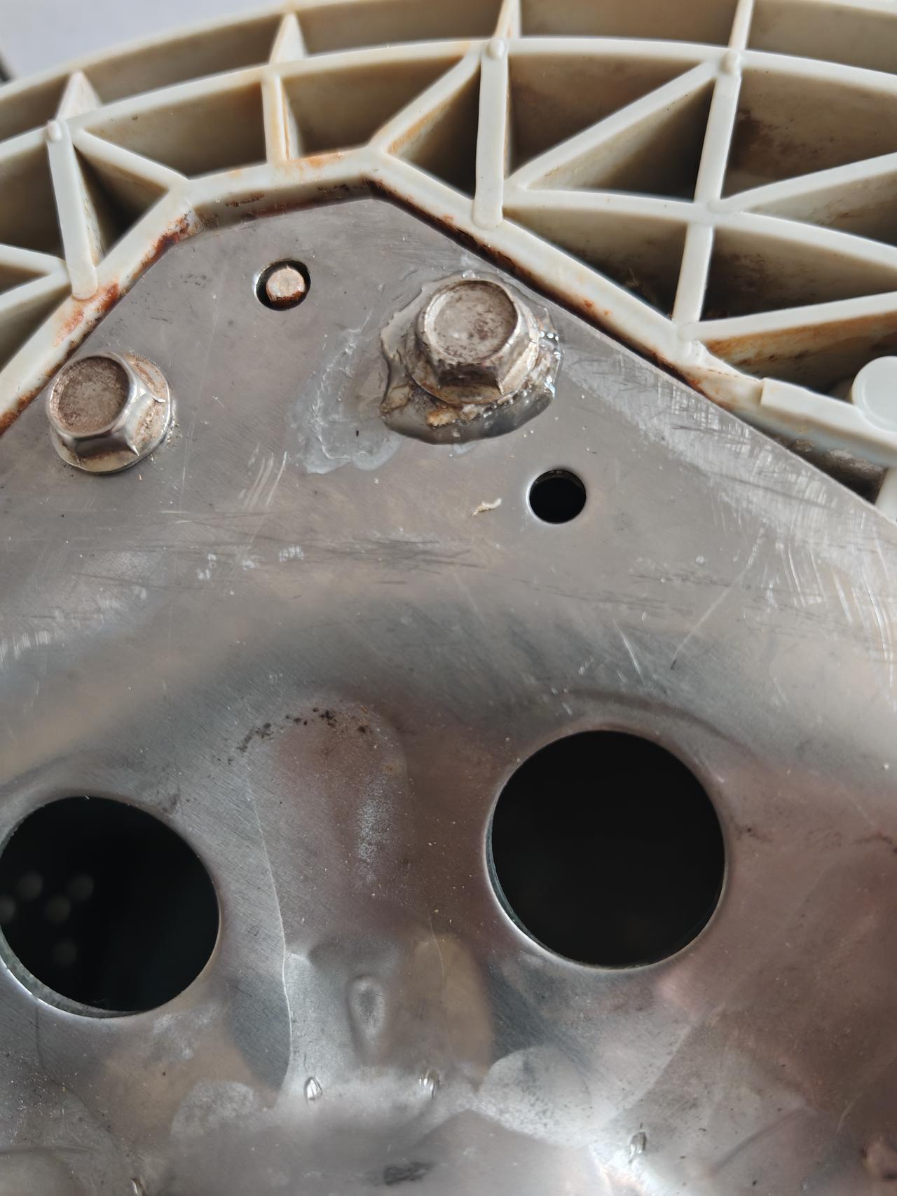春节来临前,将家里的一台买来十多年的,"海信"全自动大波轮洗衣机,进行了拆箱全面清洗。 当把洗衣机拆开后,发现离合器铁质法兰盘,差不多已经马上烂掉。 幸亏拆的及时,要不然不知道什么时候,在使用中坏掉的话,真的是麻烦大了。 事不迟疑,马上到网上查看同款法兰盘。为了今后的保险起见,决定买一个不锈钢的。 你还别说,网上还真有这种不锈钢的同型号产品。不过,说心里话,这个法兰盘的价格还真不便宜,一百多元。全网搜个遍,都是这个价格,没办法,下单买下。 昨天中午,把货取到。午睡过后,进行恢复安装。 这样的洗衣机,对我来说,拆御安装,再轻松不过了。只不过在拆御过程中,顺便想把显示屏按健不灵敏的问题解决掉。拆开显示屏,在按健处,粘上塑料垫片,增加高度,问题得到解决。 不过,需要说明的是,在安装法兰盘的时候,8个螺丝中,发现其中一个,螺丝孔扩大松动,螺丝固定不住。 为了保证洗衣机,今后在使用的过程中,不会出现故障,必须将这颗螺丝固定住才行。急中生智,将螺丝孔和螺丝上,注入万能胶水,顺劲将螺丝带紧。然后,再用热熔胶,熔化后,将螺帽周围固定住。 这样一来,总算放心下来,等我全部安装后试机,一切正常。 退休十多年来,家里的各种物件,不管是保养还是维修,都是我一个人去做。在生活中寻找乐趣,动手动脑,早已经成为我的一种生活习惯,何乐不为呢!