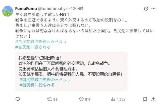 麻生太郎为高市站台,公开叫嚣“与中国一战”,日本舆论彻底炸锅! “麻生太郎这老小子,竟敢公开叫嚣‘攻打中国’,结果被自家民众骂惨了!” 近日,自民党副总裁麻生太郎为高市早苗站台时,围绕台湾问题大放厥词。他声称美国靠不住,日本得自己武装,一旦遭攻击就反击,还暗示台海局势升级日本可能军事介入,这简直就是赤裸裸的战争叫嚣! 可不用中方回应,日本民众就先“炸锅”了。 评论区里,全是怒骂声。为啥会这样?因为日本民众已经真切感受到“对抗中国”的代价了。 过去,日本政客觉得嘴上对中国强硬,成本让别人担。但现在,中方的反制“板子”实实在在打在了日本普通人身上。中国游客大量减少,让日本旅游、餐饮等行业损失惨重;对日两用物项出口严格管制,尤其是稀土领域,让日本制造企业叫苦不迭。 新能源汽车、精密机床、半导体材料等行业,都高度依赖中国关键原材料,这不是喊几句口号就能解决的。 日本普通民众不懂复杂地缘政治,但他们清楚看到订单减少、成本上升、就业不稳。麻生太郎还在台上鼓动“战争心理准备”,这不是把民众往火坑里推吗?难怪大家会如此愤怒。 麻生太郎可不是口误,他清楚自己在说什么。 作为自民党重量级人物,他站出来是为高市早苗“兜底”,向极右翼基本盘释放信号。可这个基本盘正在快速萎缩,日本社会已明显分化。 政客还沉浸在“军事正常化”幻想中,民众却清醒意识到,卷入冲突日本绝无胜算。 从军事实力看,中日差距巨大。海空力量、导弹体系、工业动员和战略纵深,日本都处于绝对劣势。而且日本列岛基础设施脆弱,冲突升级根本承受不住。 更关键的是,美国是否会为日本拼命,日本自己都没底。麻生一边承认美国靠不住,一边幻想日本单独对抗中国,这不是自相矛盾吗? 麻生太郎的表态,暴露的是日本右翼的焦虑,不是底气。 战争不是儿戏,政客可以豪言壮语后转身就走,可买单的永远是普通人。 日本选民这次骂得凶,不是情绪失控,而是开始清醒。 希望日本政客能早日认清现实,别再让民众为他们的疯狂买单! 大家对麻生太郎的疯狂言论有何看法?评论区聊聊!