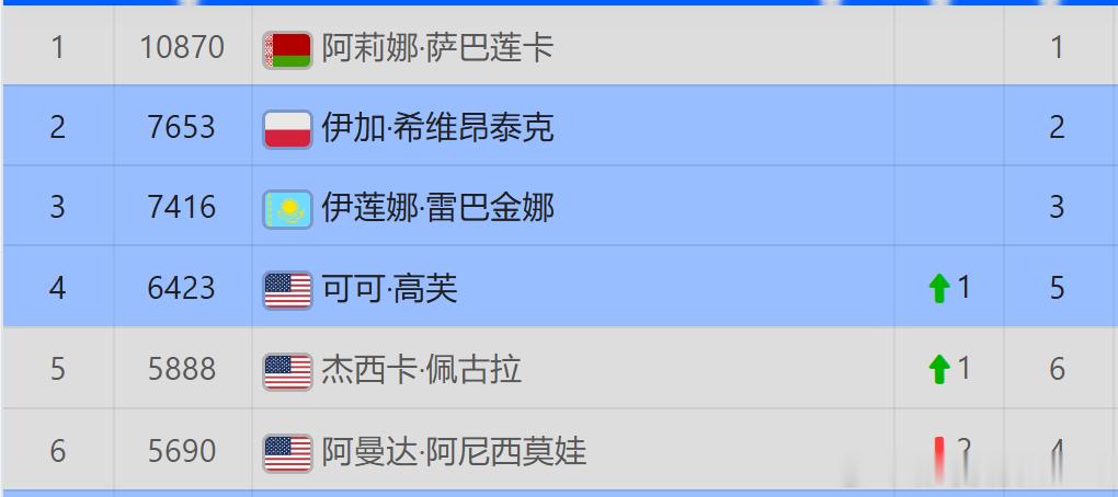 输掉比赛后,阿尼西莫娃本站丢掉1000个积分,即时排名从第4位直接下降到第6位。短期内很难重新回到前3。