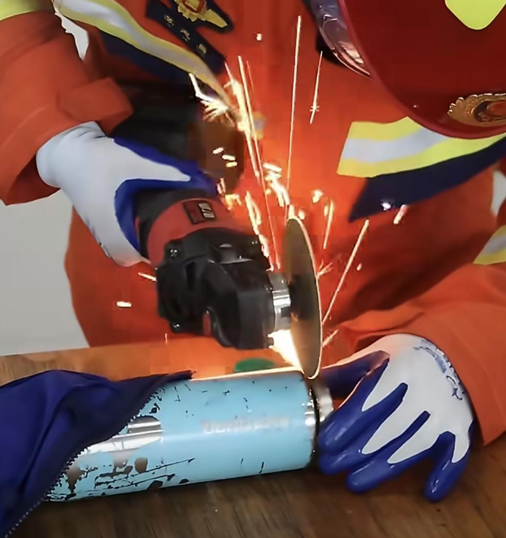 女孩手臂被卡保温杯, 消防员换了几种工具 剥开了一层又来一层,消防员还一直贴心安慰女孩,疼就和叔叔说,不疼咱就忍一下, 消防员笑称:这杯子质量太好了,