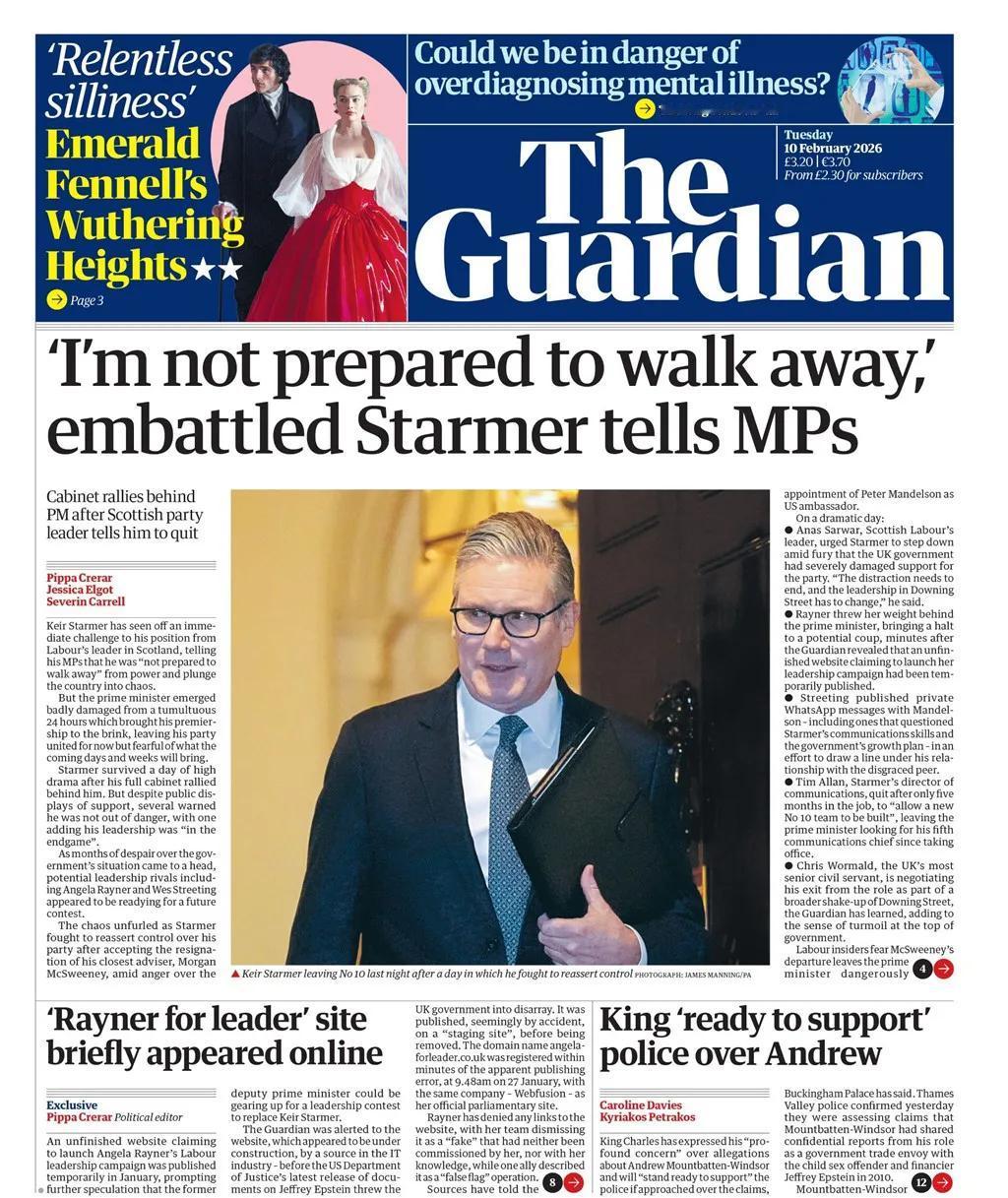 据《卫报》报道,英国首相基尔·斯塔默爵士已告诉他的本党议员,他“不准备离开”唐宁街10号(首相府)。 先前他错误任用与美国性犯罪富商爱泼斯坦案件相关的人员为驻美国大使,饱受议员与反对党批评。