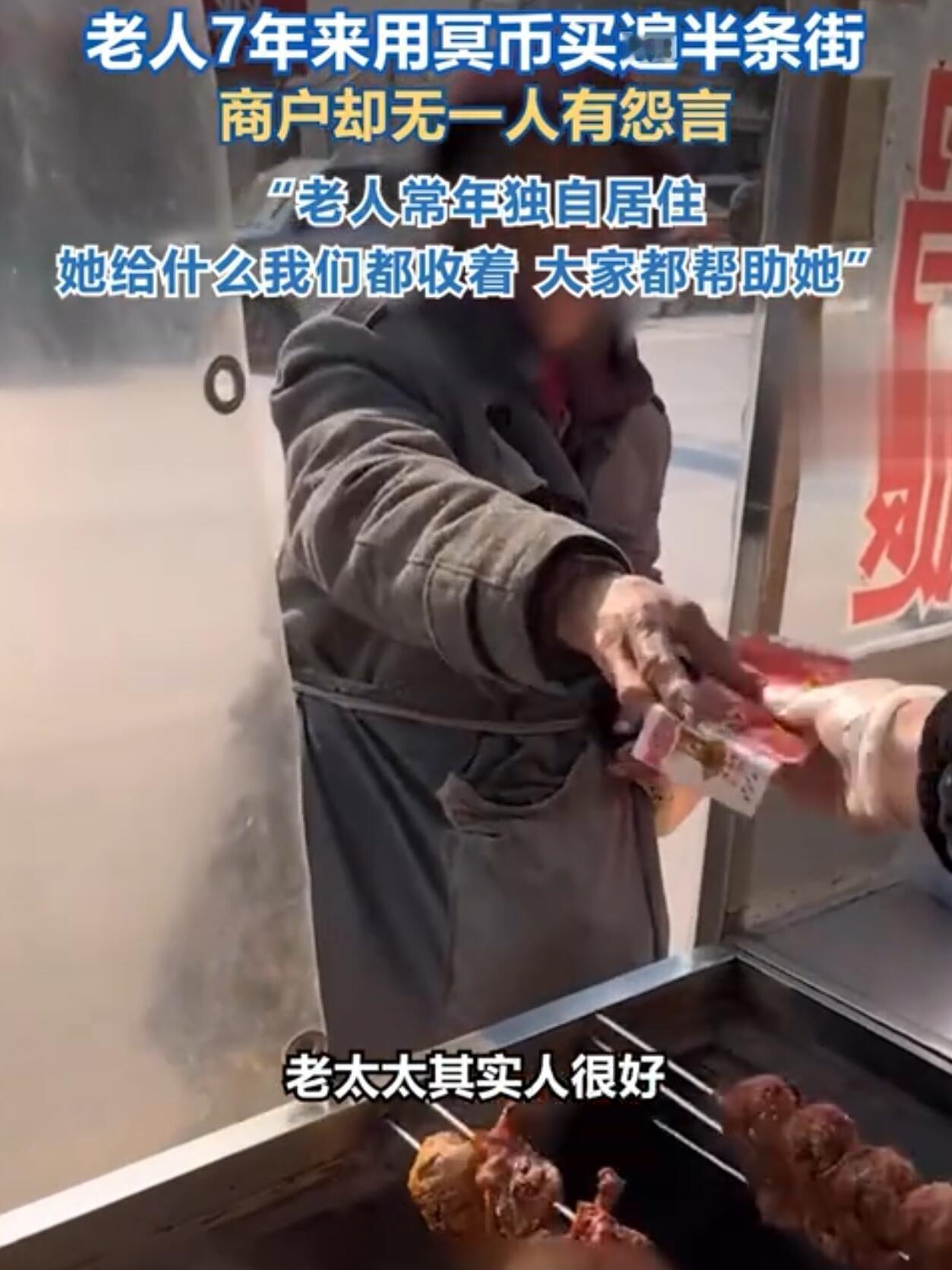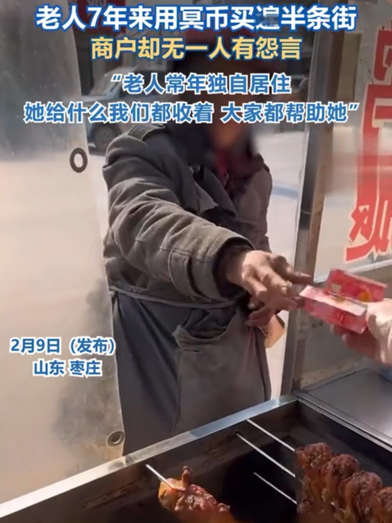 山东一条小吃街上,有个七十来岁的老太太,挺特别的。她来买东西,掏出来的不是钱,是些冥币或者卡片。更特别的是,整条街的摊主,都笑呵呵地收下了。 这事儿,他们心照不宣地干了七年。 老人是自己一个人过,儿子不在身边,日子挺难的。街坊摊贩们知道了,没人说破,也没人嫌弃,反而默契地开始了这场“交易”。她递过来一张没用的纸片,摊主就高高兴兴地“收钱”,然后递上热乎乎的吃的。 卖烤鸡腿的,隔三差五就给老人留个腿,烤得金黄冒油。做铁板烧的,会特意给卷个料足的饼,菜多肉也多。别的摊主也一样,老人来了,就跟正常顾客一样招呼。你要是不收她的“钱”,她还真就倔着不肯要东西。 就这么着,这条满是油烟味和叫卖声的小街上,有了个不成文的规矩。大伙儿用这种方式,照顾着一位老人的三餐和体面。 说真的,这种默契挺让人暖心的。它不是什么大张旗鼓的慈善,就是街坊邻居间最朴实的照应。老人维持了她的自尊,大家也默默地尽了份心。这种藏在市井烟火里的善意,比什么都珍贵。 你身边有没有这种悄悄发生的、不起眼却温暖的事儿?有时候,一点小小的将心比心,就能让一个角落充满人情味儿。