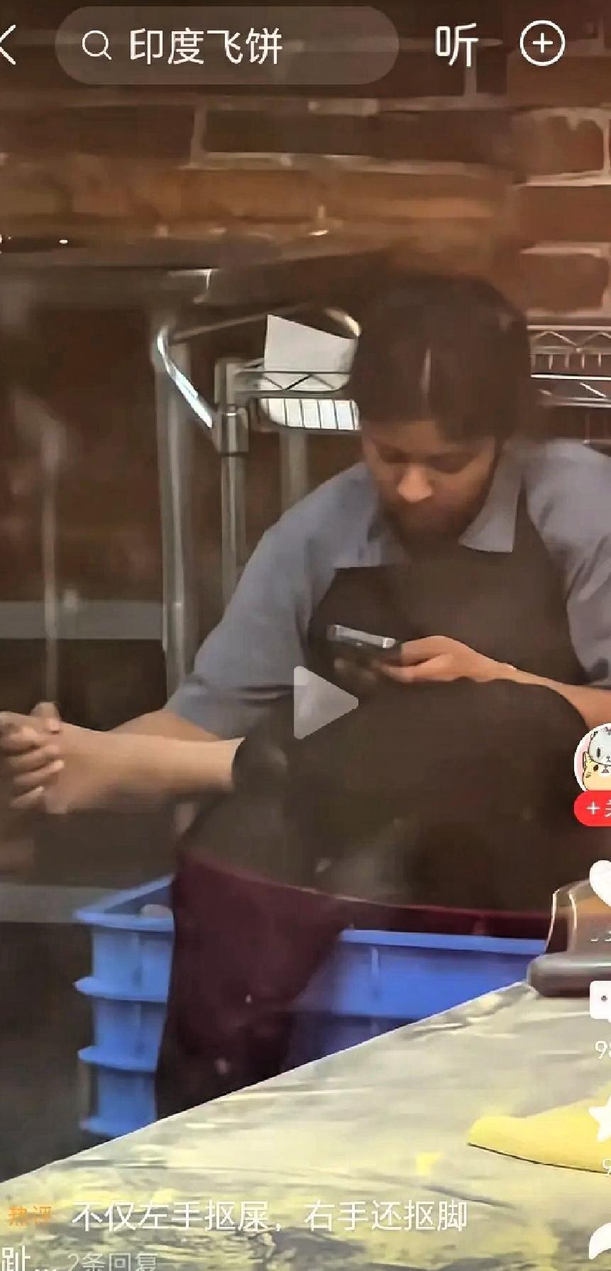 这就是专家,这就是科技人才??? 这就是补贴1000元的印度飞饼师傅,扣着脚板,桌面上放着做饼的面,这卫生……, 建议做印度飞饼的科技人才应该每天先去给发他们科技补贴的部门人员送去一份飞饼早餐表示慰问,别冷落了对你们的热情哟。