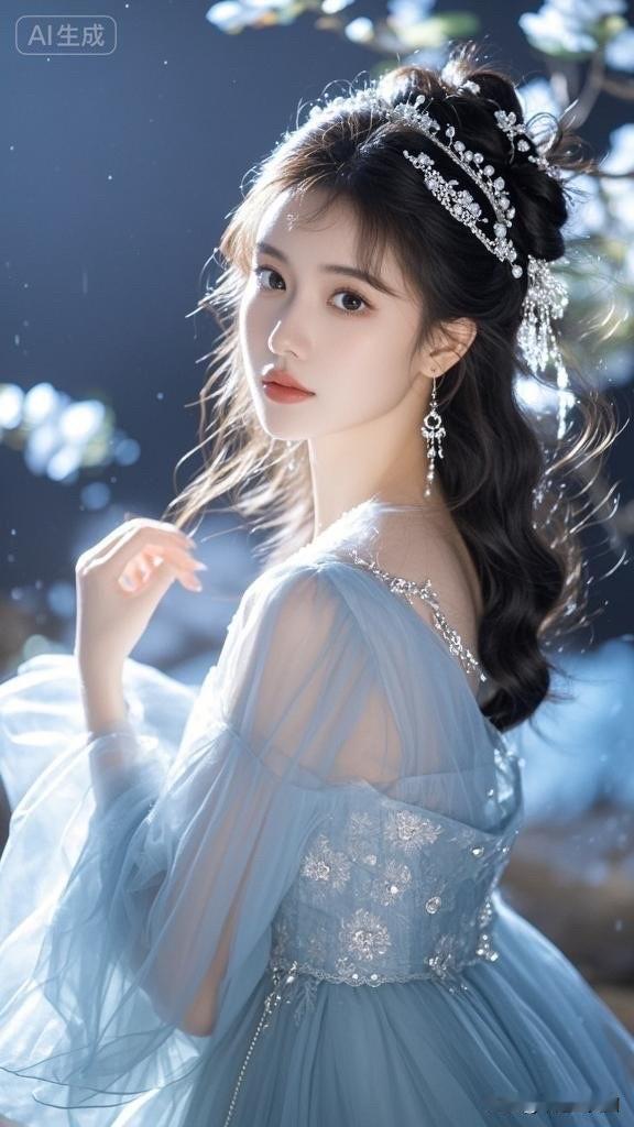 梦幻蓝纱裙,仙气飘飘的少女,宛如童话中的公主。