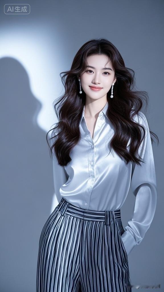 优雅白衬衫+条纹裤,都市女性的时尚穿搭!👗✨