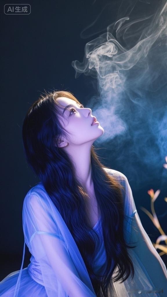 梦幻蓝调,仙气缭绕,少女沉思