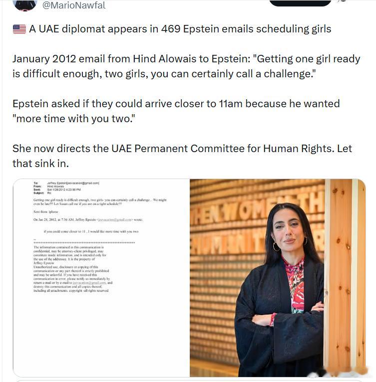 一名阿联酋外交官出现在469封与杰弗里·爱泼斯坦相关的电子邮件中,内容涉及安排女孩。