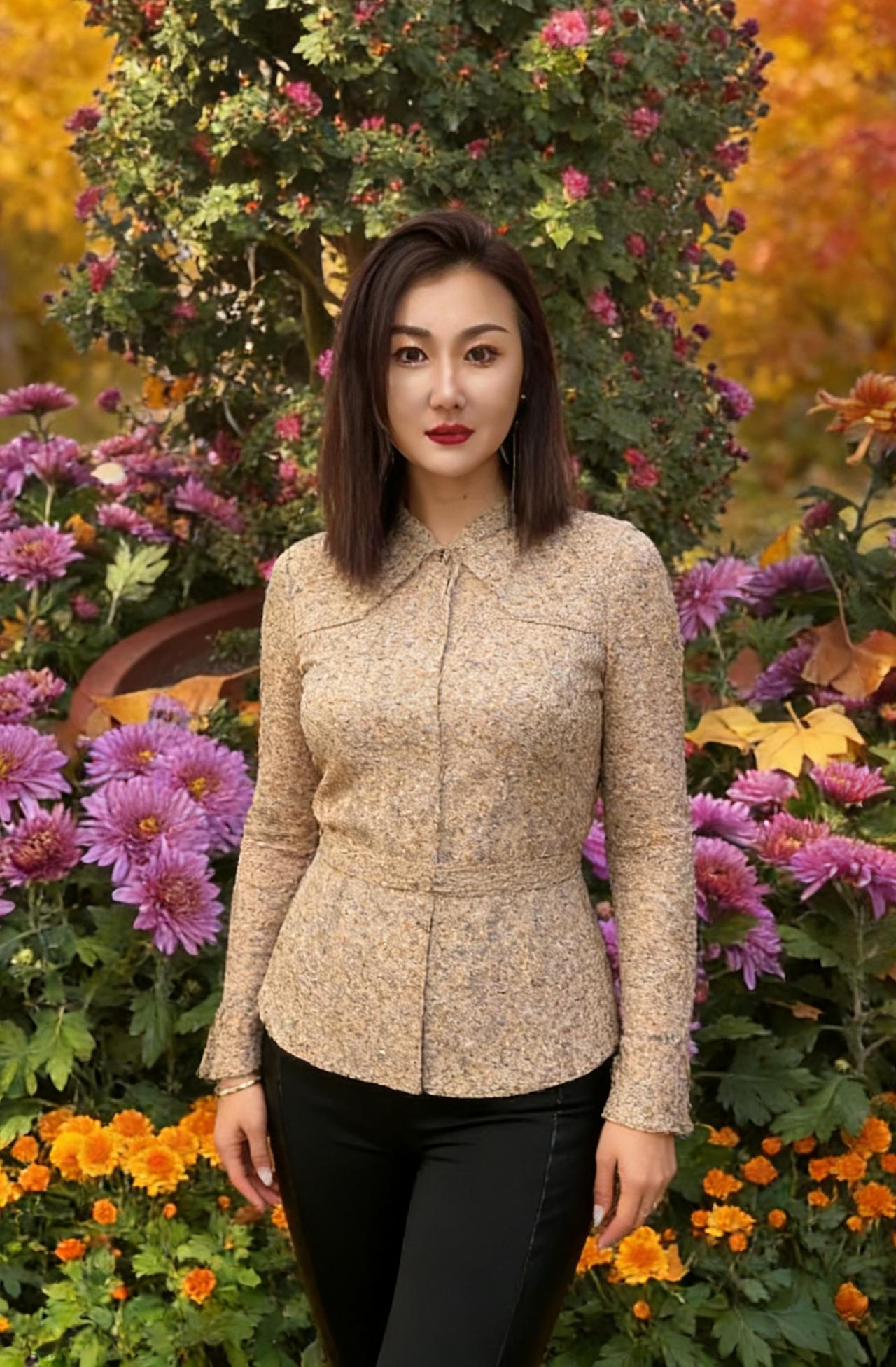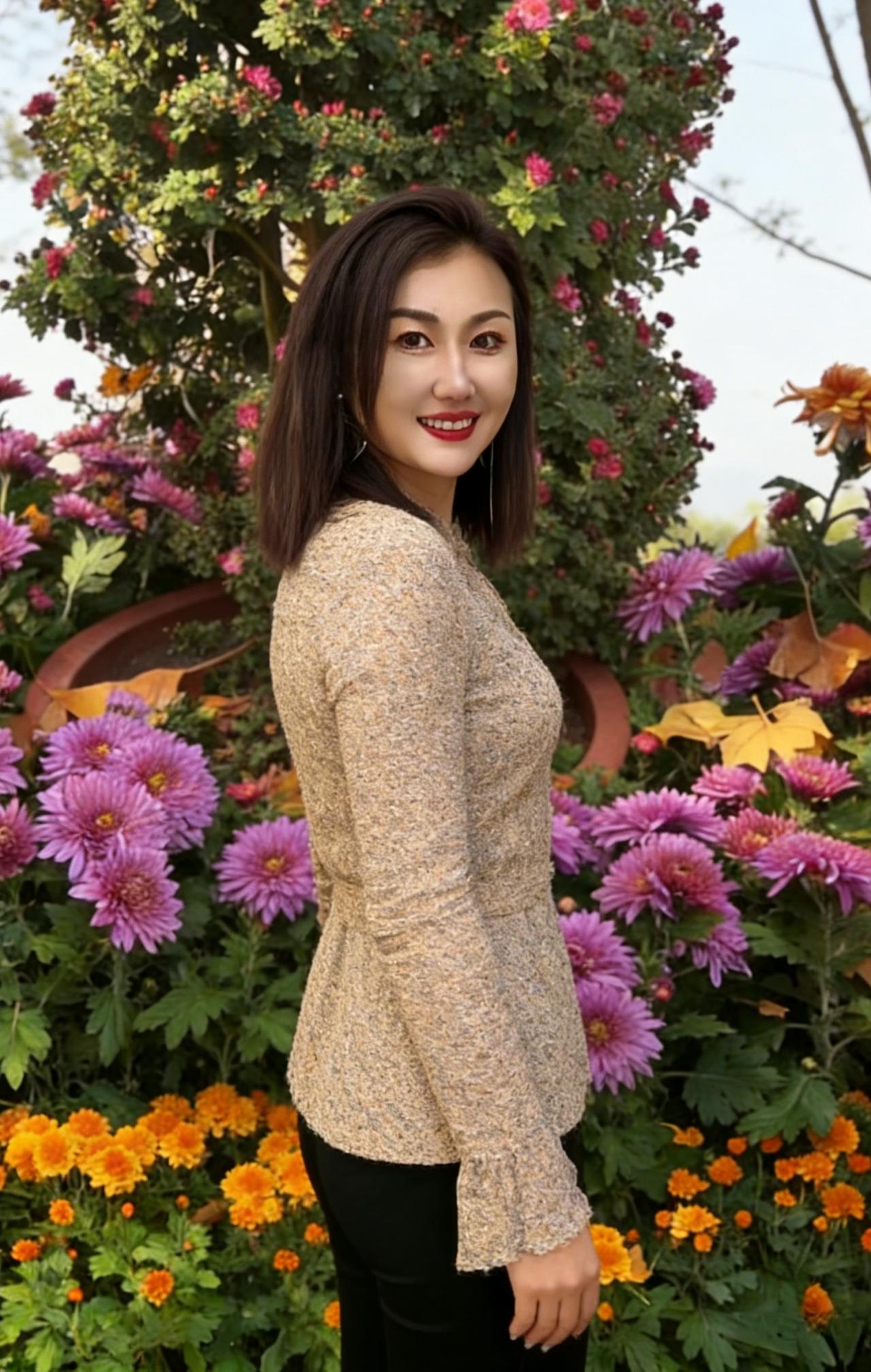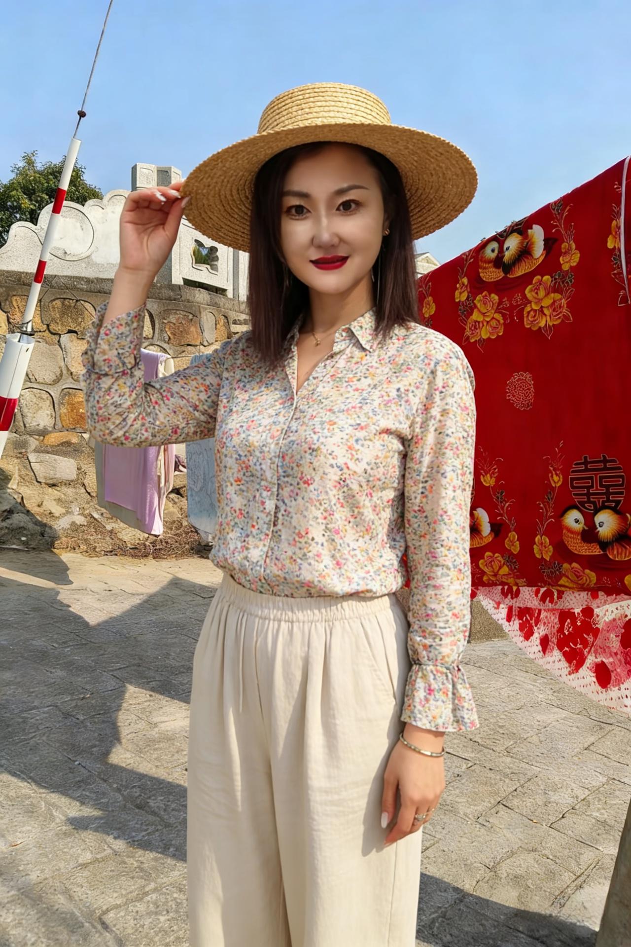 她是沙滩上行走的潮汐 蓝衬衫起伏,像呼吸着的海岸线 蕾丝在肌肤上绣着隐秘的涟漪 浪花退去时,留下她的足印当贝壳 ~ 紫藤架下,她把紫色穿成披肩 灰西装裁剪出都市的棱角 却被藤蔓缠绕成柔软的修辞 铁轨延伸,是她目光丈量的远方 ~ 菊丛中,针织衫漫开细碎的花 转身时,裙摆扫落一片金黄 碎花围裙兜着厨房的烟火 也兜着田埂上的晚风与稻香 ~ 草帽是她头顶的小太阳 碎花衬衫在阳光下舒展成云 露营服裹着旷野的风 红唇膏却点燃了所有平淡的日常 ~ 她不必寻找风景 因为她站在哪里,哪里就是风景 每一次定格,都是生活的即兴创作 而她,是自己永恒的主角