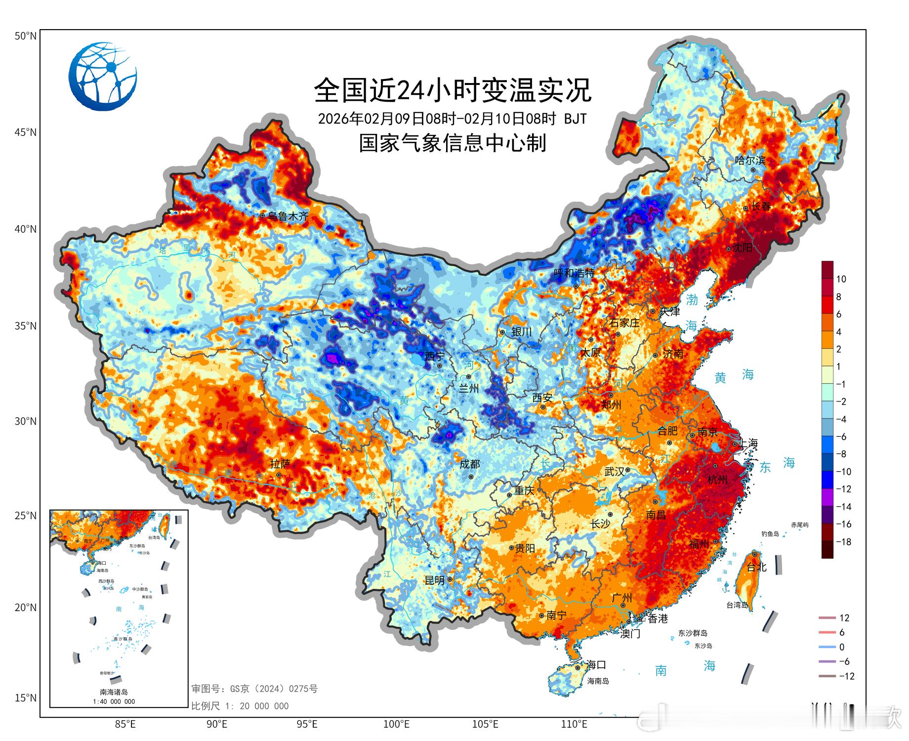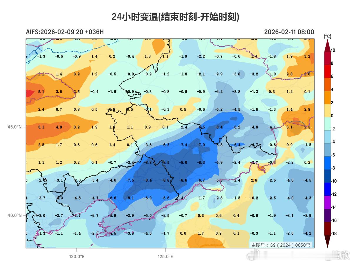【升温和降温】今天早晨对比昨天早晨,东北地区东部升温显著,同比大幅上升了10-20℃。其中吉林通化县升温22.3℃。因为持续有南风托举,加上夜间云层保温作用,好比打开了空调的暖风+盖上厚被子。但明天早晨这一带可能又会成为降温核心区,因为夜间放晴+冷空气到来——被子没了,空调改吹冷风。图4为数值预报明晨的降温,实际可能比预报降得更多。