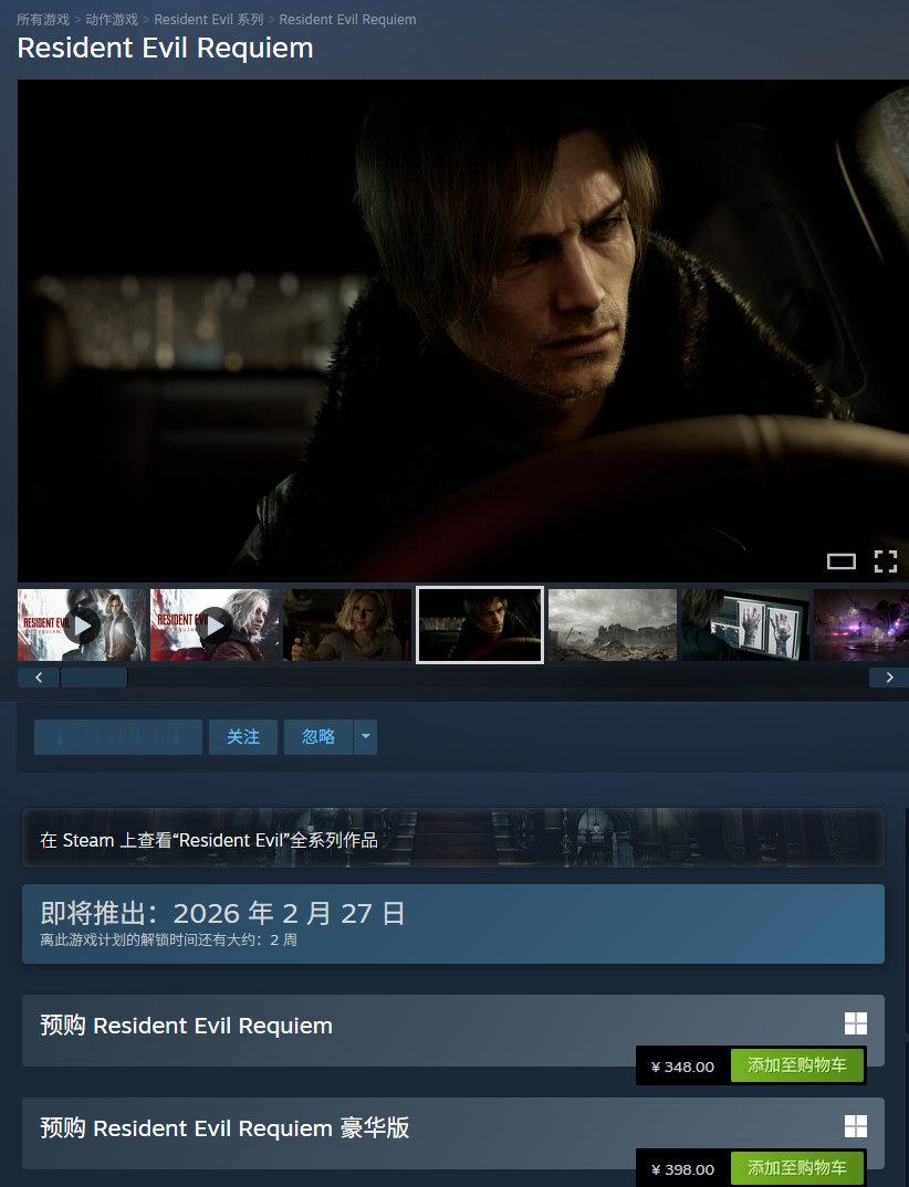 《生化危机:安魂曲》官方宣布,已有超500万名玩家把游戏加入到了愿望单中。本作将于2月27日登陆PC/NS2/PS5/Xbox,Steam平台标准版售价348元,支持中文配音与字幕。