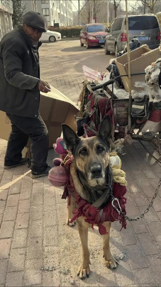 泪目了,山东,拾荒老人从垃圾桶捡回一只小狗,省吃俭用养它。老人年纪渐长腿脚不便,一次随口说想让狗帮忙拉车,没想到它竟真的叼起车绳往前走,这一拉就是十几年。 镜头并未拉向宏大的历史现场,而是聚焦在山东城郊一条坑洼不平的土路上。 若是离得近些,你首先会看到的不是人,而是一根被崩得笔直的旧车绳。 绳索的一端,拴着那辆堆满废品、沉重不堪的小推车。另一端,死死勒进了一张满是杂毛、缺了牙的狗嘴里。 这根本不像是在遛狗,倒像是一场无声的拔河。 这不是什么即兴的表演。如果你有耐心翻看时间轴,会发现这条路,他们已经走了整整15年。 前面的拉车工叫“虎子”,一只今年已经16岁高龄的黄狗。后面扶把手的,是76岁的拾荒老人。 在医学定义的残酷世界里,16岁的狗约等于人类的百岁老人,而76岁的老人正受困于关节炎和脑血栓后遗症。 旁人看到的是风景,或者是猎奇。 但在当事人那里,这根本不是什么风景。狗借了老人的馒头续了命,老人借了狗的力气才迈得动腿。这根绳子,是他们在这个世上行走的唯一拐杖。 把时针拨回到15年前那个寒冬。 那时候的虎子,还不是现在的“大力士”,它只是一团在垃圾堆里瑟瑟发抖的废弃物。瘦骨嶙峋,浑身湿透,连叫一声的力气都已经冻没了。 按理说,它的命数就该止步于那个冰冷的垃圾桶。 是老人动了恻隐之心。在那样的穷日子里,他脱下旧棉袄把它裹回了家。没有狗粮,没有罐头,有的只是从老人嘴边省下来的半个馒头和一口稀饭。 那一刻,命运的齿轮开始咬合。这不仅是一次收养,更像是一份不用签字的生死契约。 很多人好奇,狗怎么会拉车?是训练出来的吗? 那也是数年前的一次偶然。老人的腿脚实在疼得厉害,推着车走不动道,看着身边的狗,随口嘟囔了一句:“帮我拉拉车吧。” 这本是一句对着空气的抱怨,或者说是无助时的自语。 谁也没想到,虎子像是听懂了什么最高指令,立刻叼起绳子就开始往前拽。 这一拽,就是十几年。从壮年拽到了暮年,从牙齿锋利拽到了满口豁牙。它把老人那句无心的请求,当成了余生必须执行的铁律。 这些年,也不是没有过诱惑。 这狗通人性,附近的商贩早就盯上了。有人找上门,开出了那个贫困家庭难以拒绝的大价钱,想买虎子回去看货守摊。 在这条靠废品维持生计的穷街陋巷里,钱不仅是钱,那是过冬的煤,是治病的药。 但老人的头摇得像个拨浪鼓。 理由很简单,甚至有点执拗:你买走的是一条看门狗,但我卖掉的就是家里人。在那个空荡荡的破屋子里,金山银山也换不走这个唯一的活物。 然而,时间是最无情的债主。 现在的虎子,真的老了。它的牙齿掉了几颗,咬绳子的时候会漏风。它的肺活量也不行了,拉几步就得喘着粗气,胸腔像个破风箱一样呼哧作响。 老人看着心疼。好几次,他停下车,蹲下身子想把绳子从狗嘴里解下来,让它歇歇。 这时候,最激烈的冲突发生了。 虎子死咬着绳子不松口。老人越是用力解,它咬得越紧,喉咙里发出低沉的呜咽。 它或许在怕,一旦松了口,自己就真的没用了,会像当年在垃圾堆里一样被这个世界抛弃。又或许它更怕,没了它的这把力气,身后那个步履蹒跚的老头,寸步难行。 这是一场双向的“死磕”。老人为了狗的身体想放手,狗为了老人的生计死不放。 如今,在山东的雨雪天或者黄昏里,你总能看到这幅画面。 一人,一狗,一车。 街坊邻居路过时,偶尔会递过来一点吃的。累的时候,他们就依偎在路边,狗把身子贴在老人脚边取暖,老人伸出枯树皮一样的手,给它捋捋那不再光亮的皮毛。 在这个巨大的、高速运转的社会机器里,他们是被遗忘的零件。 不需要什么宏大的意义,也不需要廉价的同情。只要车轮还在转,只要那根连接着两个生命的绳子还没断,这就是他们对抗岁月的全部底气。 参考信息:新黄河.(2026-02-06).“虎子,走!”拾荒老人腿不便狗狗帮忙拉车15年