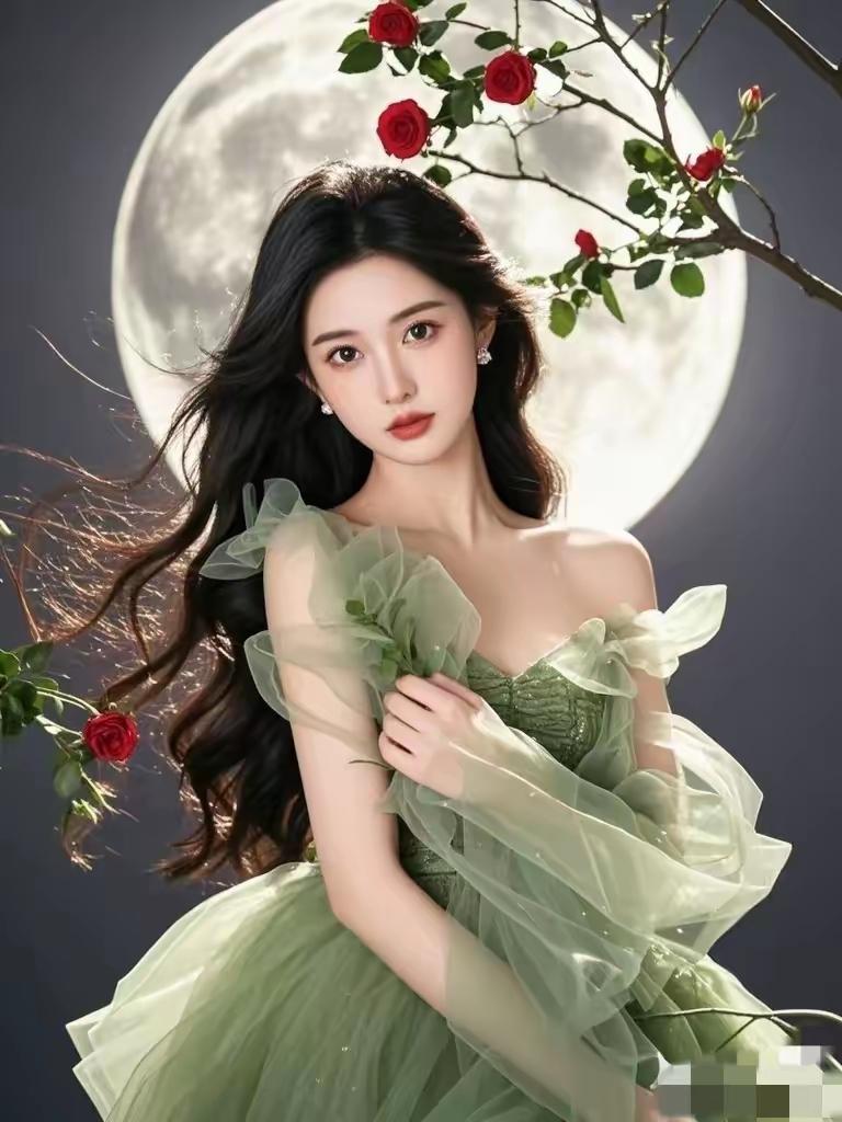 月光下的浪漫玫瑰,唯美梦幻的少女