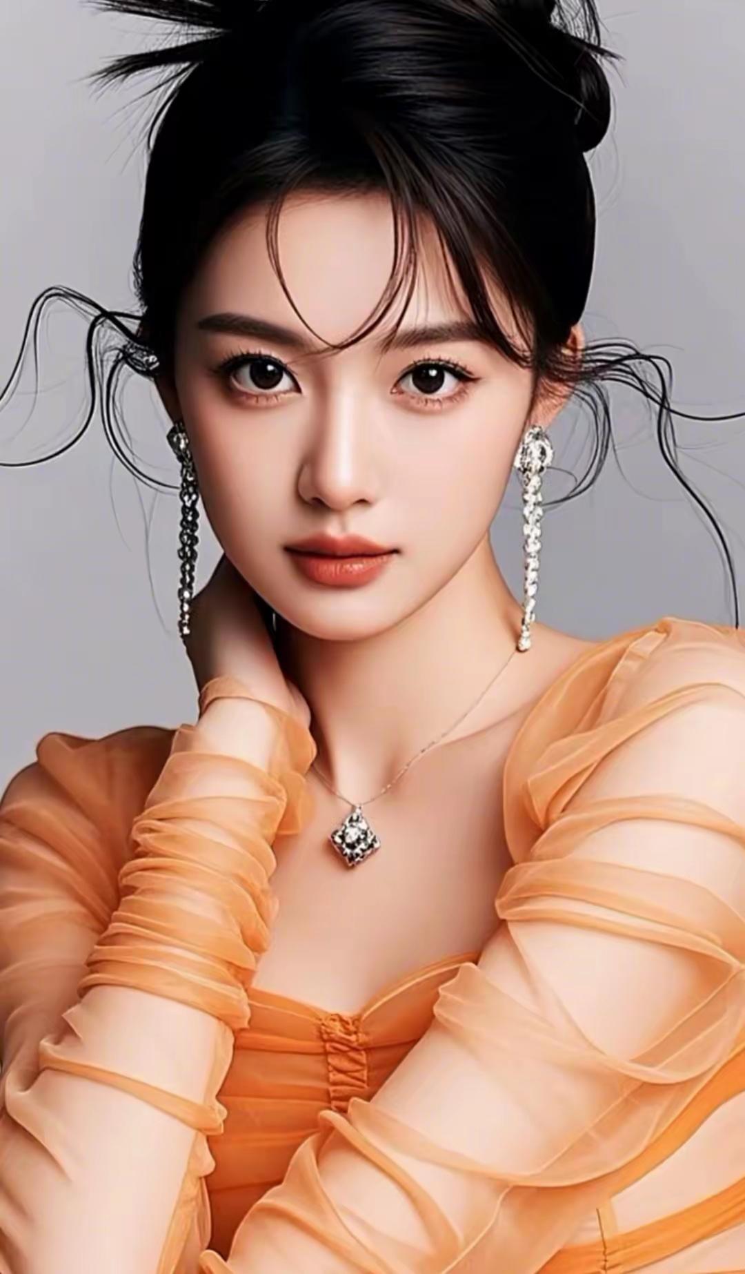 优雅复古风,橙色调礼服搭配闪亮项链,尽显高贵气质!
