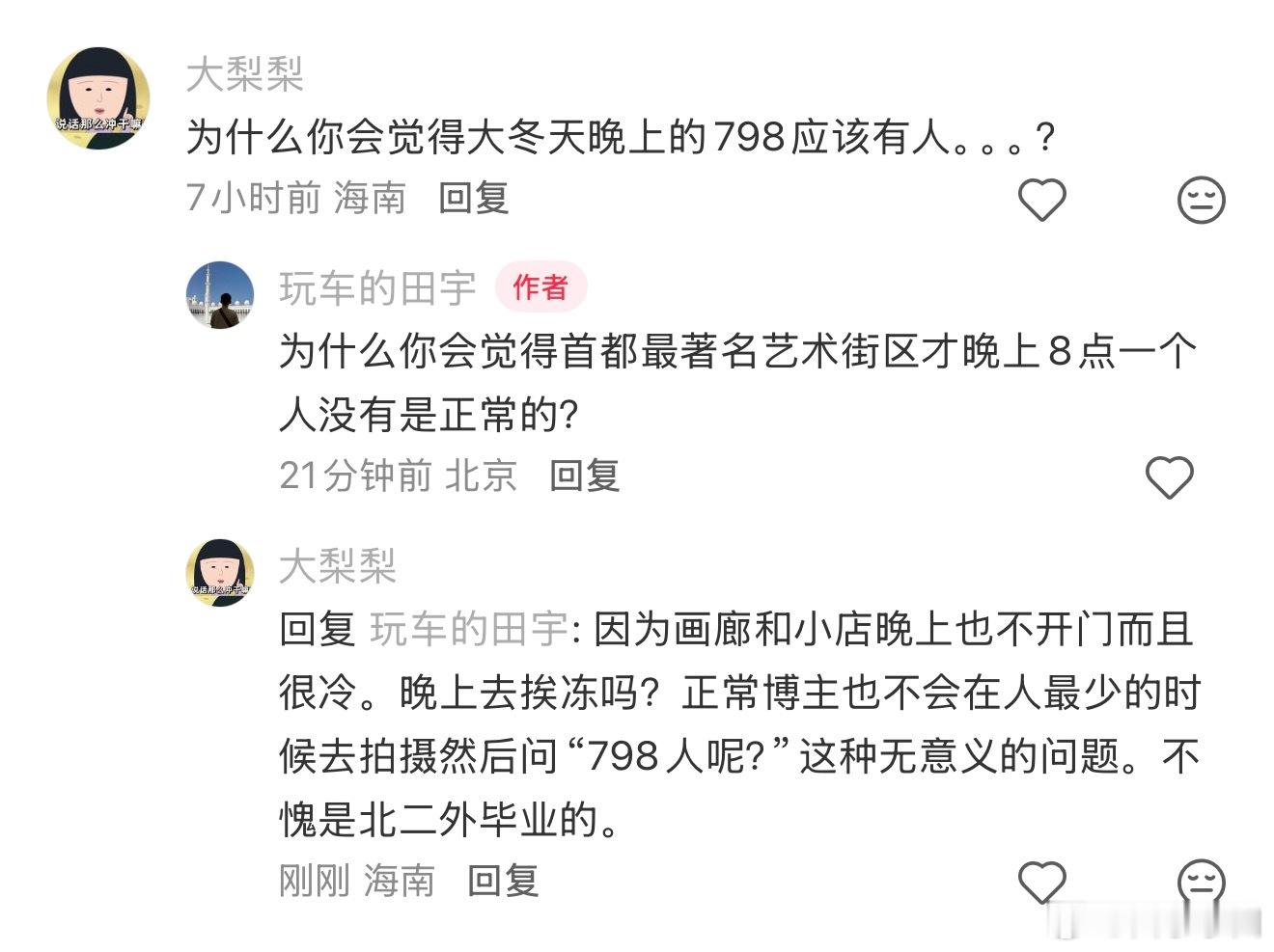 其他人留言都是友好探讨有说冬天冷的,有说商铺都下班的,有说房租涨价的,有说大环境在变化的,我觉得有道理都接受,大家一起聊天嘛