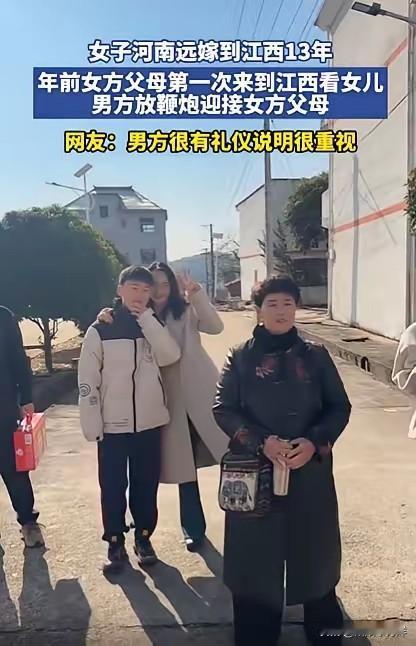 河南一女子远嫁13年,父母从没来看过她,本以为此生就这样了,没想到,娘家人却瞒着她,第一次来江西上门看她,女子感到惊喜的同时,婆家也很大气,直接放鞭炮隆重迎接!不少远嫁的姑娘看完都哭了,太有共鸣了。 她叫林秀,今年36岁。 13年前,她从河南周口的小村庄,嫁到江西九江的小镇。 那时候她23岁,满脑子都是爱情。 爸妈说江西太远,受了委屈没人撑腰。 她跟家里大吵一架,说“我选的路,我自己扛”。 揣着户口本,跟着老公上了南下的火车。 这一走,就是13年。 13年里,她生了一儿一女。 每天天不亮就起床做饭,送孩子上学,去镇上服装厂打工。 逢年过节打视频,爸妈总说“家里挺好,不用惦记”。 她也不敢提让爸妈来看看自己。 她怕一提,就想起当年摔门而去的样子。 她以为,这辈子爸妈都不会原谅她了。 今年腊月廿二,她正在厨房炸丸子。 突然听见村口传来噼里啪啦的鞭炮声。 她还纳闷,谁家办喜事这么早。 转头就看见弟弟扶着爸,妈拎着蛇皮袋,站在村口朝她笑。 她手里的漏勺“哐当”掉在地上。 13年了。 爸的背更驼了,妈的头发全白了。 弟弟说,爸妈攒了三年的钱,就等着今年过年。 他们怕她不同意,特意瞒着她,坐了15小时大巴,转了两趟车才到。 婆家的反应,让她这辈子都忘不了。 公公提前三天把院子扫得干干净净。 婆婆杀了家里最肥的老母鸡,还买了新碗筷。 鞭炮是公公特意去县城买的,一万响。 鞭炮声一响,全村人都出来看热闹。 有人说,林秀这婆家,是真把她当回事。 有人说,远嫁的姑娘,能遇到这样的婆家,是福气。 林秀站在人群里,眼泪止不住地流。 不是委屈,是庆幸。 庆幸自己没看错人,庆幸公婆明事理,更庆幸爸妈终究还是原谅了她。 其实,很多远嫁的姑娘都没她这么幸运。 她有个远房表姐,嫁去了广东。 五年没回过娘家,去年妈病重,她想回去,老公却说“车费贵,孩子小”。 还有个闺蜜,嫁去了四川。 生娃时大出血,婆家犹豫不肯签字,还是她自己咬着牙给哥打了电话。 哥连夜开车两千公里赶过去,才把她从鬼门关拉回来。 她们说,远嫁就是一场豪赌。 赌赢了,是阖家团圆;赌输了,就是孤立无援。 那天晚上,一大家子围在火炉边。 吃着妈带来的河南烩面,喝着公公酿的米酒。 爸喝多了,拉着女婿的手说:“我把闺女交给你,你要对她好。” 女婿红着眼圈说:“爸,您放心,我会的。” 林秀坐在旁边,看着眼前的一切,突然觉得,这13年的等待和委屈,都值了。 远嫁不是原罪,错的是那些不被珍惜的选择。 只要嫁的人靠谱,婆家明事理,就算隔着千山万水,也能感受到家的温暖。 那些还在犹豫远嫁的姑娘,别害怕距离,但一定要看清人心。 别为了爱情盲目,但一定要相信爱情。 愿每一个远嫁的姑娘,都能被温柔以待,都能等到爸妈笑着说“我来看你了”。 你们身边有远嫁的姑娘吗?她们过得怎么样?欢迎在评论区聊聊。
