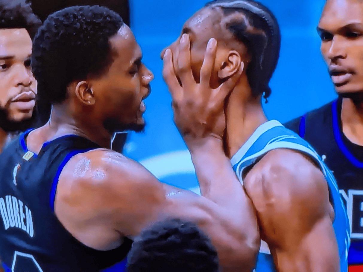 杜伦掌掴迪亚巴特,好兄弟斯图尔特替补席冲出,全场追打杜伦。 上午结束的一场NBA较量中,黄蜂与活塞的比赛打的异常的激烈,双方不仅打到最后一刻,第三节还球员之间还发生了大规模冲突。 比赛进行到第三节,黄蜂球员迪亚巴特与活塞杜伦碰撞,两人起身后,互不相让。此时失去理智的杜伦出手打了迪亚巴特一巴掌,被打的迪亚巴特不甘示弱,要找杜伦理论。 看到好兄弟被欺负,坐在替补席上的斯图尔特二话没说,追着杜伦全场跑,双方球员随即陷入混战。 事态平息后,裁判各打五十大板,将布里奇斯、杜伦、斯图尔特、迪亚巴特罚下。虽然斯图尔特行为不理智,但他的这个举动受到了很多人得认可。
