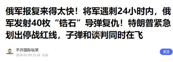 出大事了,俄军不宣而战,不到24小时,泽连斯基下令乌军有新动作 最近俄美乌三国在阿布扎比的第二轮会谈刚落幕,大家还以为能有点停火希望,结果转头就出大事了。这场谈了两天的会议,虽然各方都说是 “有建设性”,还交换了 314 名战俘,但核心的领土划分、安全保障问题一个没解决,最后成了白忙活。 更让人没想到的是,会谈结束还不到 48 小时,俄军就不宣而战,对乌克兰发起了全方位突袭,打得乌军措手不及。 俄军这次动手又快又狠,完全没给乌军准备时间。当地时间 2 月 6 日晚上到 7 日凌晨,俄军一下子出动了 408 架无人机和 39 枚导弹,其中还包括 2 枚 “锆石” 高超音速导弹,专门盯着乌克兰的能源设施和交通枢纽打。 利沃夫州、基辅州这些关键区域都被覆盖,不少发电厂、配电站被击中,导致乌克兰多地停电,交通也中断了,前线的军事部署也受了不小影响。俄罗斯国防部随后证实,所有设定的目标都被精准击中,这次打击就是要摧毁乌军的补给基础。 空袭刚过,俄军地面部队又在多个方向发力。在东部顿巴斯地区,双方打得异常激烈,尤其是克拉斯诺阿尔梅斯克周围,俄军靠着兵力优势步步紧逼。更关键的是,2 月 8 日俄军又传来消息,已经成功控制了哈尔科夫州的格卢什科夫卡和苏梅州的西多罗夫卡两个定居点。 这两个村子位置很重要,拿下之后,俄军不仅完善了战线布局,还对附近的乌军形成了包围态势。与此同时,俄军防空部队也没闲着,一天之内就拦下了乌军 27 枚 “海马斯” 火箭弹、3 枚 “海王星” 导弹和 42 架无人机,相当于乌军的大部分进攻都被挡了回去。 乌军这次是真的没料到俄军会这么猛。之前泽连斯基在会谈时还公开说支持对话解决问题,压根没预判到谈判刚结束就遭突袭。乌军总司令后来坦言,俄军这次的进攻力度远超预期,不管是空袭的规模还是地面推进的速度,都让他们来不及调整防御。 其实这也不奇怪,俄军现在有明显的优势,光是无人机操作员就有 8.5 万名,是乌军的两倍多,乌军的人员调动和补给运输都被看得清清楚楚,很多伤亡都发生在后方补给线。 再加上乌军本身就面临人员短缺的问题,有 20 万名士兵擅离职守,200 万适龄男性逃避征兵,前线防守力量根本不够用。 眼看着俄军炮火全开、步步紧逼,泽连斯基彻底坐不住了,火速下令乌军全线启动新动作,核心就是要 “关闭天空”,不让俄军的无人机和导弹再随便进来。为了实现这个目标,乌克兰专门开了国防会议,调整了防空指挥体系,理顺了指挥关系,提高拦截效率。 同时还明确了两个重点任务:一是在赫尔松、尼科波尔这些经常被无人机袭击的城市,还有苏梅州边境地区,加强防无人机部署;二是强化乌克兰腹地应对远程无人机的能力,避免后方城市再遭袭击。 除此之外,乌军也在前线做了调整,在苏梅州集中了创纪录数量的无人机机组人员,想靠着西方援助的先进无人机遏制俄军攻势。不过从目前的情况来看,乌军面临的困难不少。 防空方面,“爱国者” 导弹库存告急,面对俄军的混合打击,拦截成功率越来越低;后勤和医疗体系也快撑不住了,无人机的压制让伤员很难后送,很多滞留伤员因为救治不及时被迫截肢,士兵的防寒装备和炮弹也严重短缺。 其实俄军这次不宣而战,背后的战略意图很明确。一方面是要落实今年的既定计划,扩大苏梅州和哈尔科夫州的 “安全区”,保障俄罗斯边境地区平民的安全。 另一方面,谈判桌上谈不拢,就只能靠战场说话,通过军事打击增加谈判筹码。毕竟现在俄军在兵力和弹药上都占优势,战时经济也在全力支撑,慢慢推进就能不断压缩乌军的防御空间。 而泽连斯基下令 “关闭天空”,也是没办法的办法。乌克兰的防空系统一直是短板,之前就多次被俄军无人机和导弹偷袭得手,这次俄军的大规模空袭更是让能源和军事设施受损严重。 如果不能守住天空,不仅前线士兵难以抵抗,后方平民的生活也会受到更大影响,到时候谈判的底气就更不足了。不过要实现 “关闭天空” 并不容易,既需要内部指挥体系的高效运转,也需要西方持续提供防空导弹等援助,这两者目前都存在不确定性。 现在俄乌双方的战斗还在持续,前线几乎全天不间断交火,尤其是波克罗夫斯克、库皮扬斯克这些关键方向,争夺得异常惨烈。国际社会虽然关注,但短期内很难改变战场态势。 这场冲突打了这么久,不管是俄军的突袭,还是乌军的反击,最终受苦的都是双方的平民。希望双方能早日回到谈判桌前,真正解决核心分歧,让战争早点结束,让老百姓能过上安稳日子。