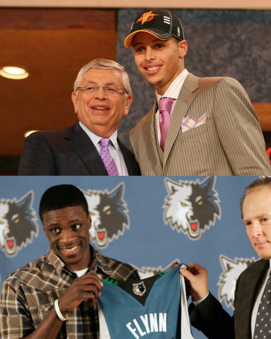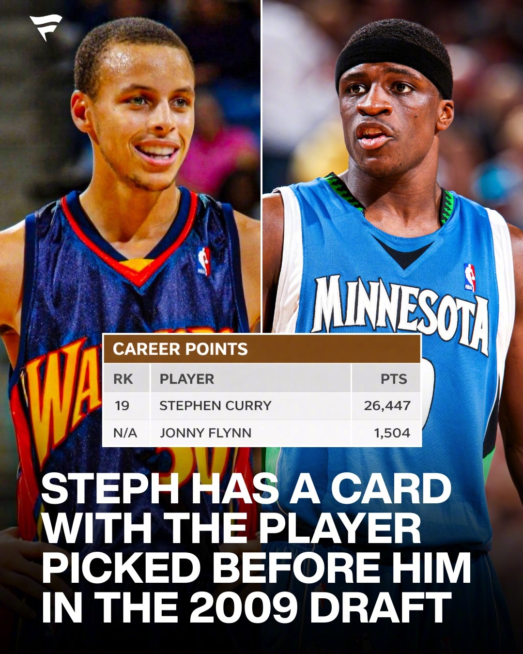 在当年,两个人的咖位确实差不多。弗林第六顺位被选中,库里第七顺位被选中。第一年在森林狼有场均13.5分4.4助攻,虽然不及库里的17.5分5.9助攻,但看起来也是有点东西的。结果第二年直接倒闭,第三年后就消失了。