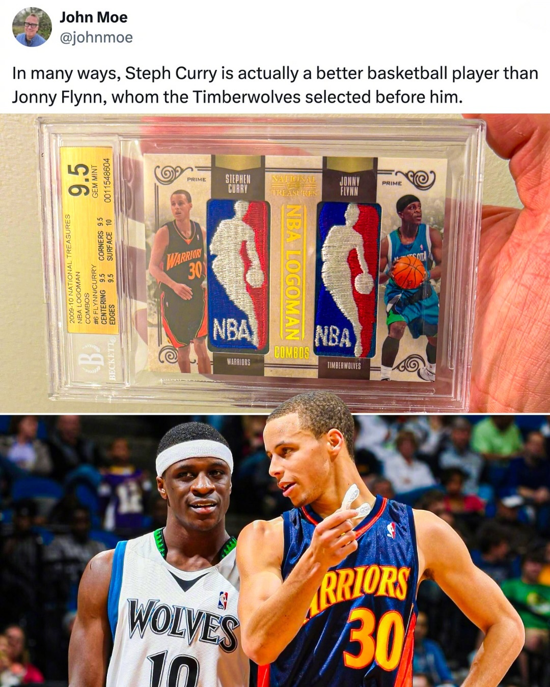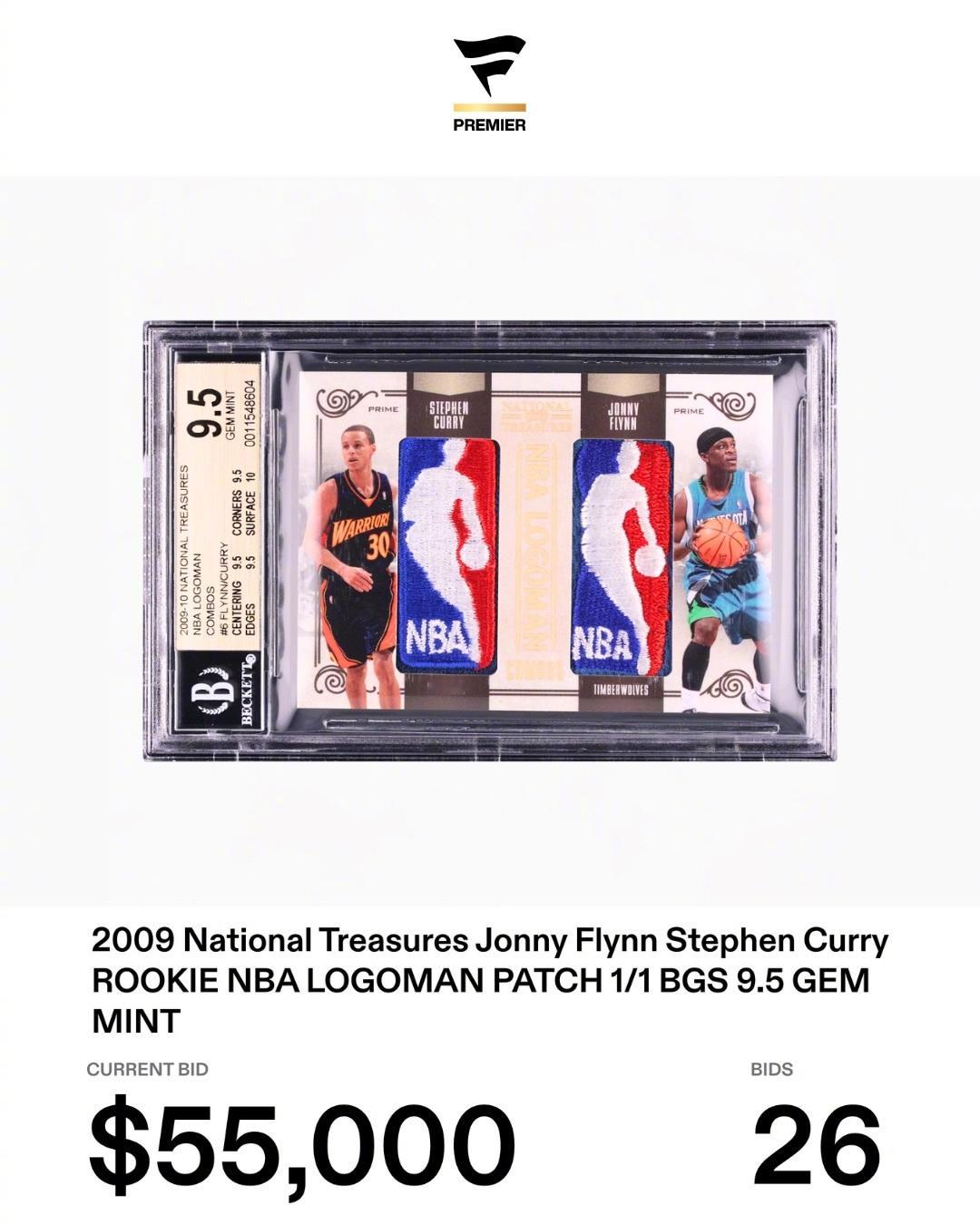 有球迷出价55000美元竞拍一张库里和弗林新秀赛季时的双logo man球星卡。