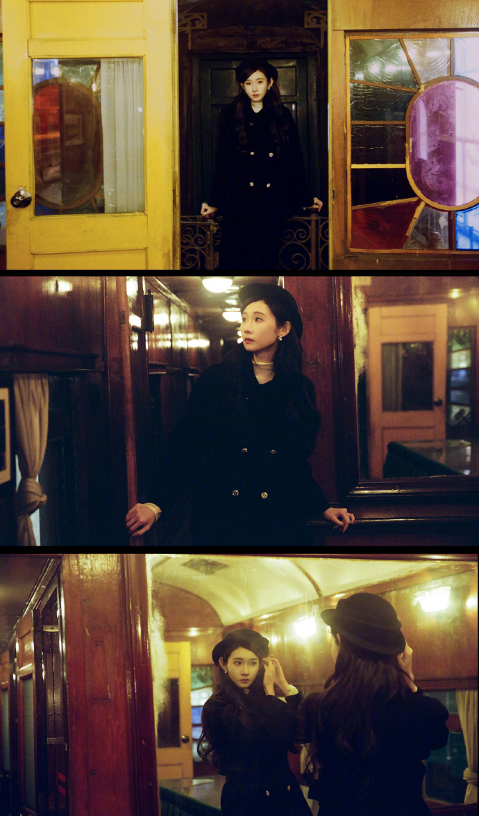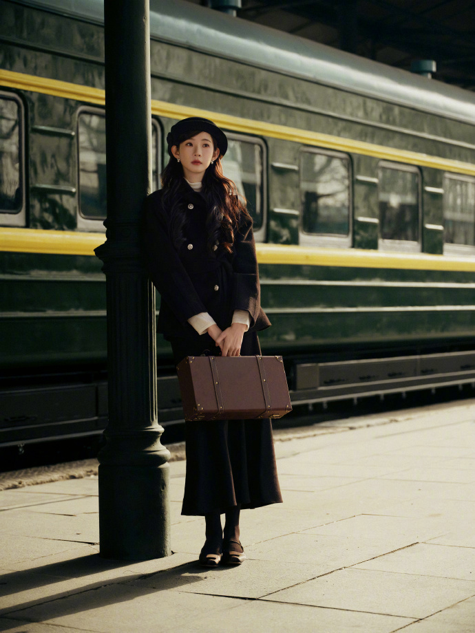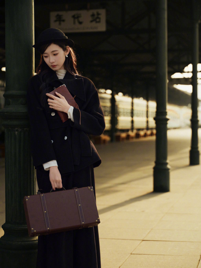 谁来给张艺凡递一个民国本啊!火车站拍的生日写真美我一大跳!贝雷帽配黑色大衣,珍珠耳饰点缀清冷眉眼,硬是在火车站拍出了电影感!像民国远渡重洋回国的千金大小姐!破碎感与故事感双重拉满,这不就是从民国小说里走出来的女主角吗!