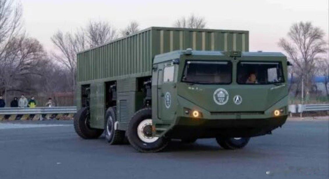 航天科技正在测试的电动卡车平台,6×6的底盘,每一个轮胎都可以独立转向,独立驱动,猜测采用的是轮边电机驱动方式。这个平台可以原地转向,任意方向移动,非常适合作为各种导弹、雷达等高价值武器的运载平台。