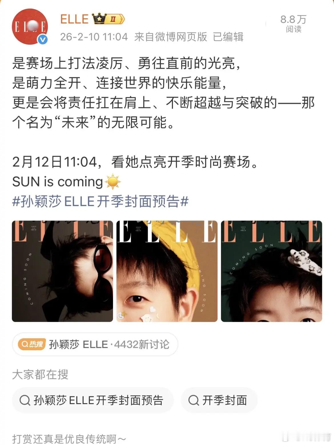 孙颖莎ELLE开季封面预告赛场上的凌厉“小魔王”,时尚界的耀眼新星!孙颖莎二登《ELLE》,一举拿下三月开季封面。至此,她已集齐四大顶级刊期,成就了属于中国乒坛的首个时尚“大满贯”。2月12日,共同见证冠军的多元魅力!