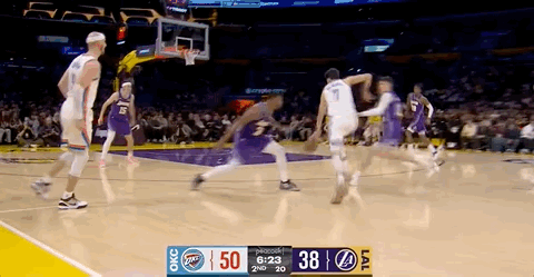 半场结束,湖人58-67雷霆,如何评价半场表现?雷霆vs湖人 詹姆斯8分2篮板3