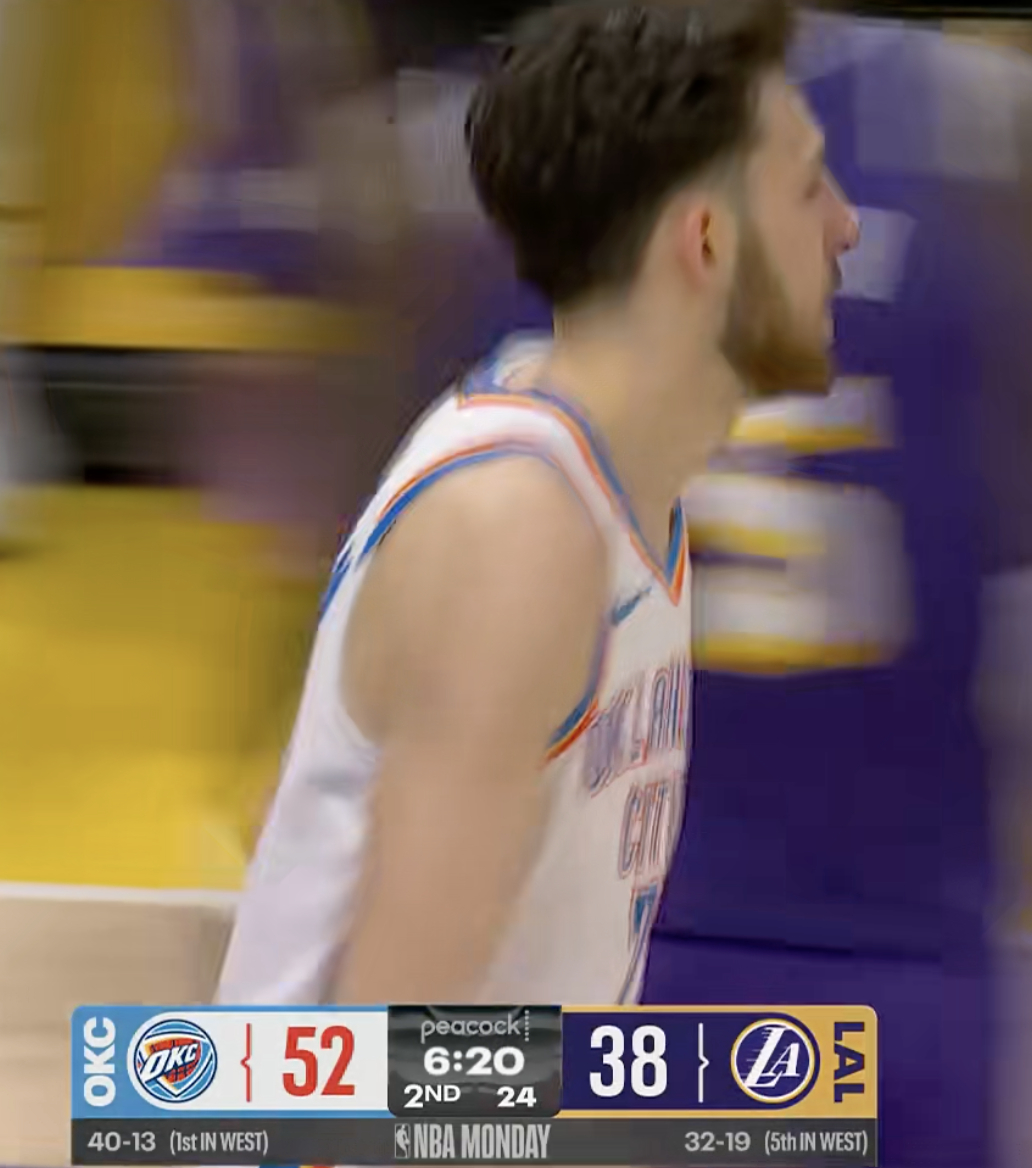 湖人暂停!卡鲁索三分!雷霆打出7-0高潮反超湖人7分!雷霆vs湖人