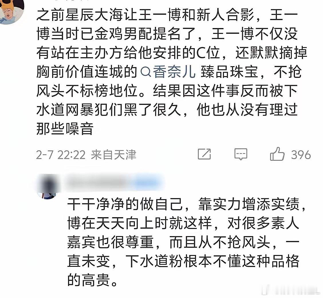 “我只能说,王一博和他的粉丝这些年辛苦了”“王一博是靠作品说话,不是靠这个搜那个榜的说话。”两个帖子上千条回复,路人有很多,夸起来比摩托狠多了王一博人品大出圈,每个人心里都有杆秤,王一博会越来越好