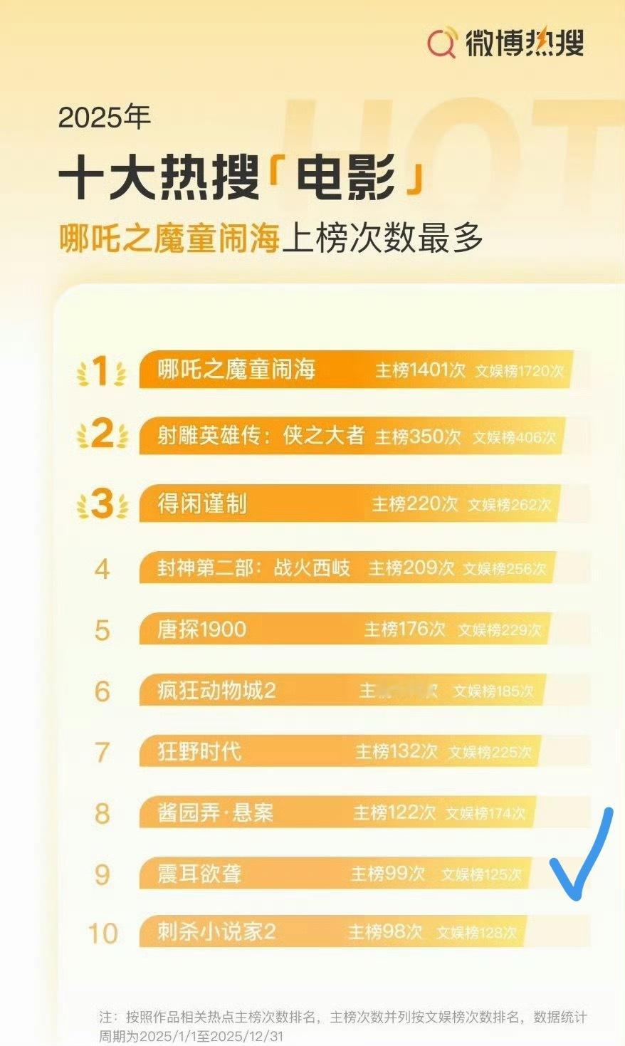 2025年微博热搜十大热搜电影檀健次震耳欲聋上榜