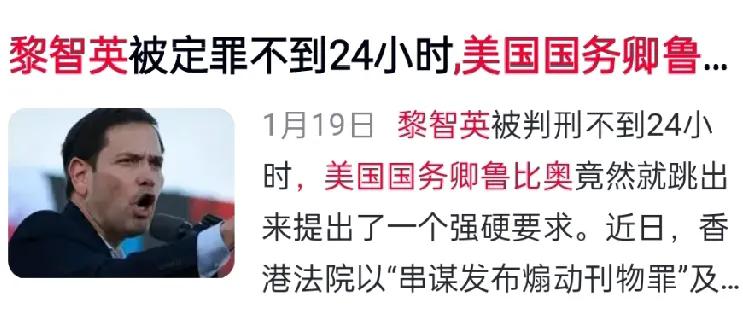 怎么了看鲁比奥为黎智英叫屈?我们要从多维度关注再深度提升认知? 其一,美国国务卿鲁比奥发文无端叫嚣,声称香港当局对黎智英的判决不公正,还恬不知耻地敦促给予其所谓“人道主义假释”。这一行径,再次将美国政客的双标嘴脸与傲慢姿态暴露在世人面前。 其二,黎智英长期勾结外部反华势力,在香港兴风作浪,肆意破坏香港的繁荣稳定,严重违反香港本地法律,其种种恶行证据确凿、不容抵赖。香港司法机关依据法律对其进行审判,判决公正合理、罪有应得,这充分彰显了香港的法治精神,也是中国司法公正的有力证明。 其三,鲁比奥却罔顾事实,对中国香港的法治和中国司法指手画脚,毫无道理和资格可言。他满脑子都是政治操弄,为抹黑中国、干涉中国内政,不惜颠倒黑白、混淆视听,把人权法治当成肆意干涉他国内政的幌子。 其四,这种无理叫嚣,是霸权主义的丑恶表演,只会让世界更看清美国的虚伪。中国维护国家安全、保障香港长治久安的决心坚定不移,绝不容外部势力破坏! 对此你怎么看?