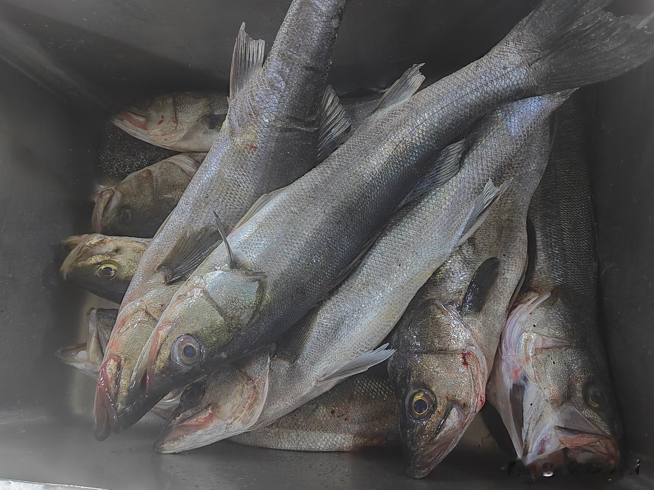 今天发了个小财,一睁眼,库房门口多了一桶鲈鱼,不用说,这肯定是钓鱼高手不顾寒冷,昨晚的劳动成果。 今天早上去库房取东西的时候,在库房门口放了一桶鲈鱼,我寻思着这肯定是船长钓的,因为前段时间申请伙食的时候,船长说过到了日本,如果抛锚的话,就钓鲈鱼,现在库房晚上锁门,可能怕打扰到我,就直接放库房门口了。 今天早上刚刚忙完了早餐,有个AB对我说,昨晚和船长钓了9条鲈鱼,怕打扰到我,放库房门口了,我说看到了,谢谢哈,今天中午就吃鱼。 忙完了早餐,赶紧杀鱼,这些鲈鱼大的有4-5斤,小的也有3斤多,从7:30开始收拾,一直收拾到8:45分才收拾完,鲈鱼的身上有很多刺,手被鱼刺扎破了好几次,收拾完了,厨房的地面上以及案子上到处都是鱼鳞,赶紧冲地面吧,明天凌晨就进港了,不能再拖了,刷完了地面已经9点多了,接着准备午餐吧,不能休息了,就这样一直忙活到了吃午餐,终于可以休息了! 今天的午餐清蒸鲈鱼,老醋花生,凉拌生菜和西红柿鸡蛋汤!