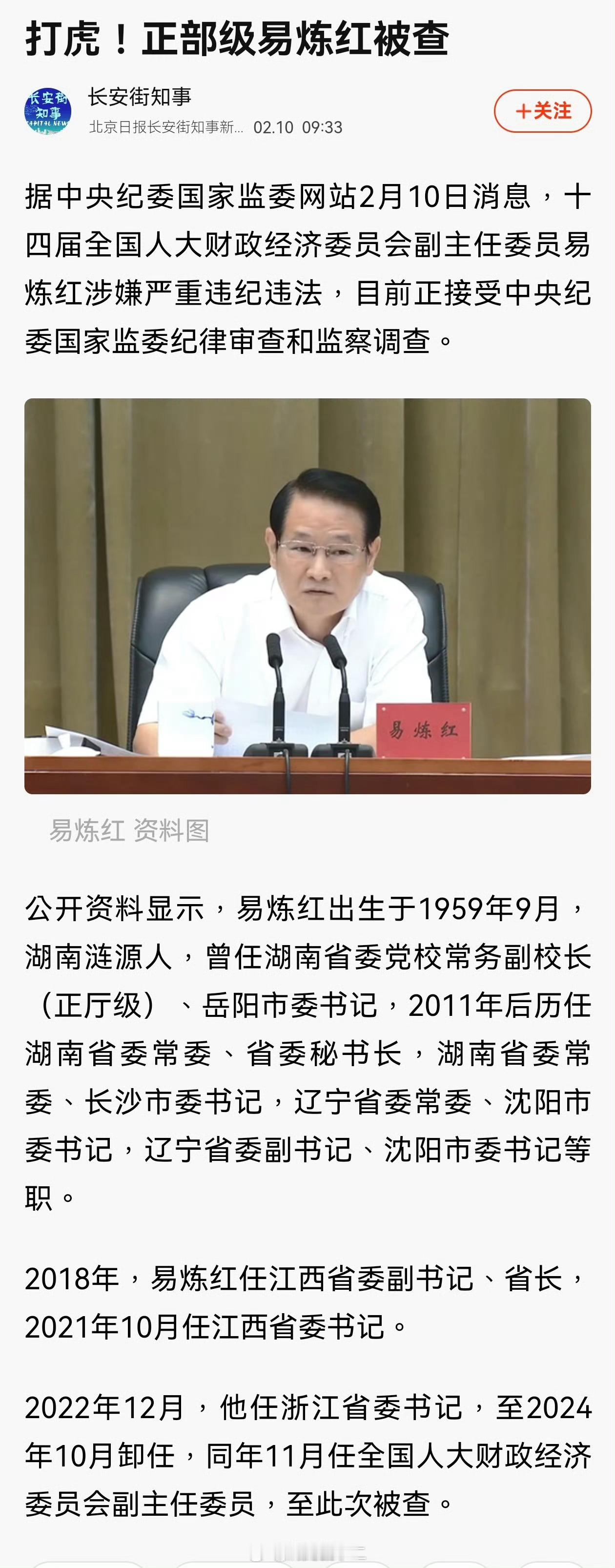 据新华社消息,易炼红被查,易炼红是湖南人,工作足迹历经湖南、江西、浙江等多地。