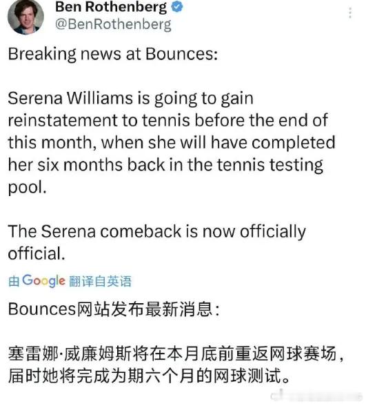 北京时间2月10日,据多位记者爆料,塞雷娜-威廉姆斯将在本月底前重返网球赛场,届时她将完成为期六个月的网球测试。届时,小威廉姆斯将以44岁的高龄征战WTA。