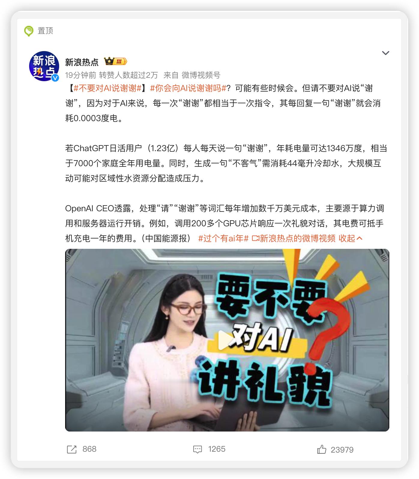 “别给AI说谢谢”这事儿其实挺逗的。之前有人拿环保说事,觉得多句嘴就浪费几度电,但现在的技术像DeepSeek早就能本地处理这些客套话了,能耗根本不是问题。