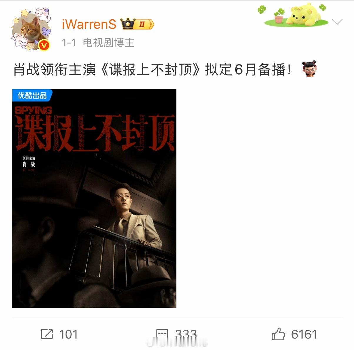 肖战谍报上不封顶这部剧的排播我老早就发了6月备播了的!我以为大家都知道了呀!谍报