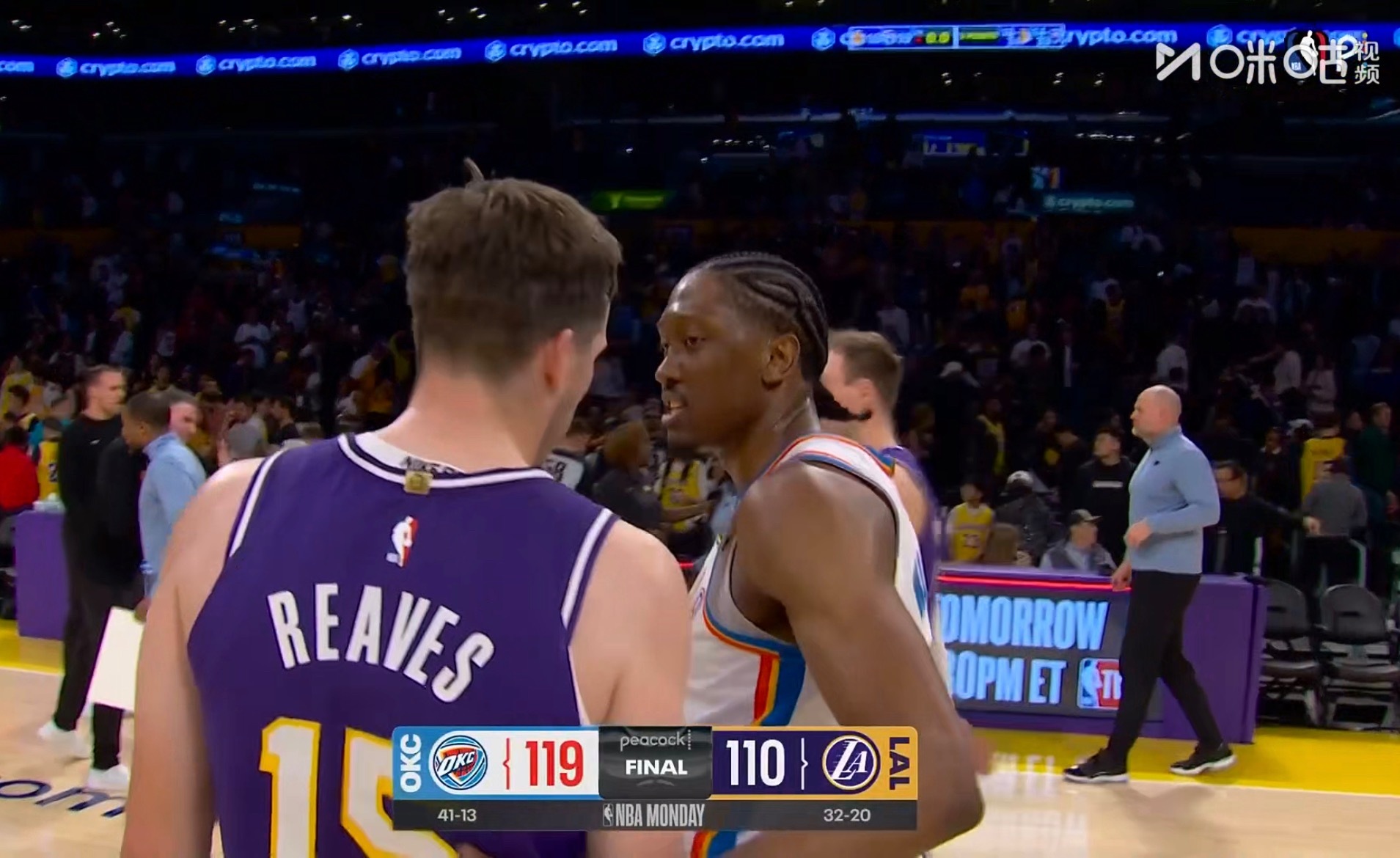 比赛结束,湖人三连胜被裁判终结。 雷霆vs湖人