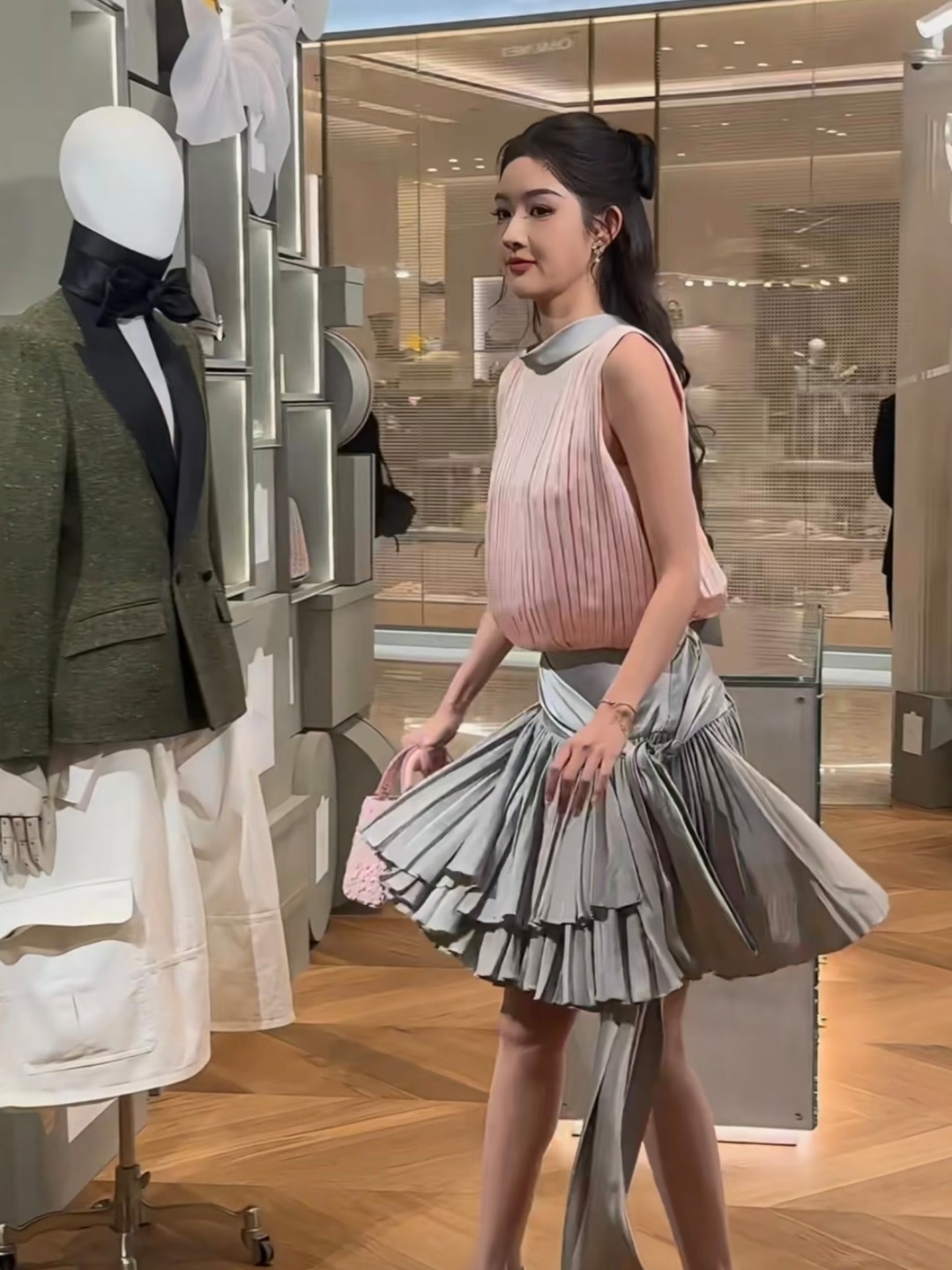 终于对王玉雯172有了实感,这么长的裙子居然都没盖到她膝盖,好逆天的身材比例!