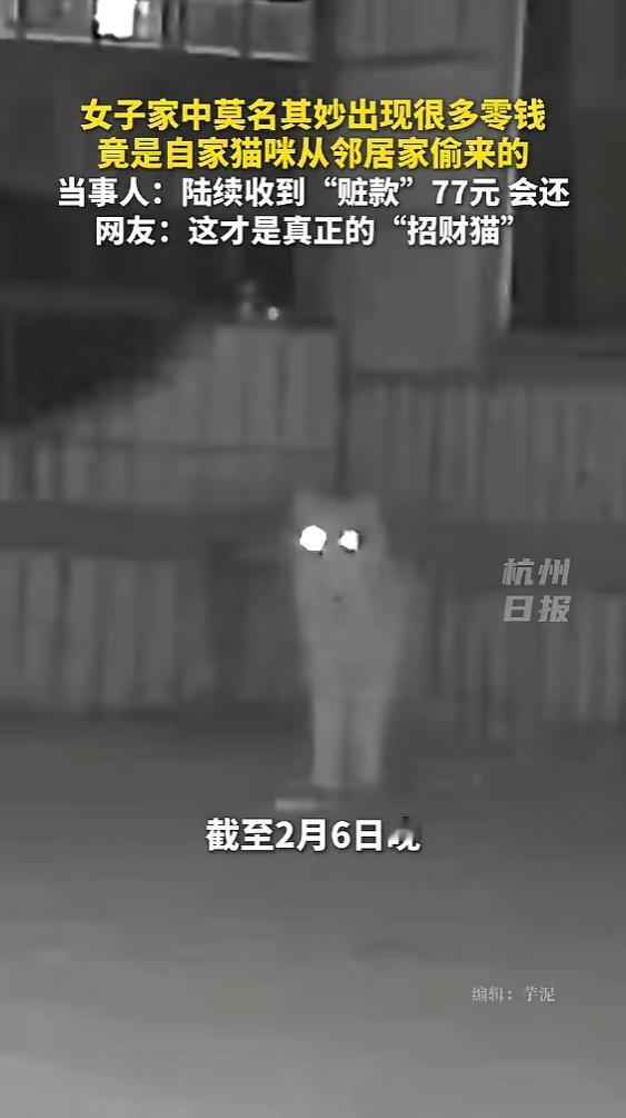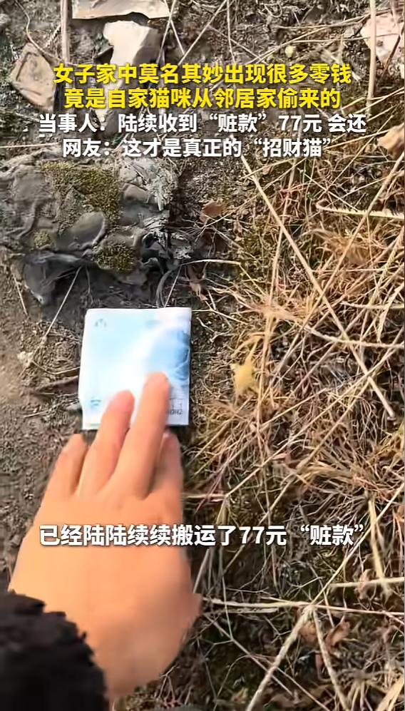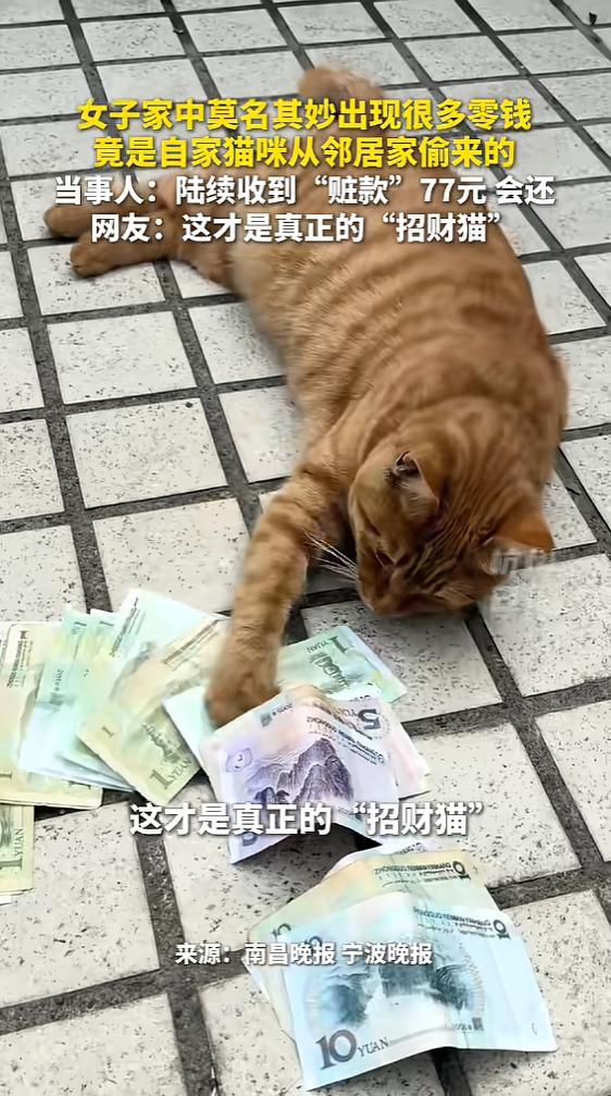 “太有灵性了!”近日,四川,一女子拜完财神后,家里每天出现零钱,她差点以为财神显灵了,还是最后看了监控,才发现是自家小猫趁自己不注意,从邻居家偷偷叼回来的,这让女子哭笑不得,赶紧把钱还给邻居并道歉。网友:这是“招财猫”! 四川一名女子的经历,在网上火了起来,说起来又好笑又有点尴尬。 这个女子是做小生意的,前段时间想着快过年了,就特意抽时间去寺庙拜了拜财神。 她也没想着发什么大财,就是想着新一年生意能顺顺利利,多赚点钱,一家人能过得红火些。 谁能想到,拜完财神没几天,家里就出现了一件怪事。 她平时一个人住,家里收拾得不算多精致,但也还算整齐,可那段时间,不管是沙发缝隙里、床头柜上,还是客厅的角落,总能捡到一两张零钱。 一开始就一两块、三五块,她也没往心里去,只当是自己平时买东西找的零钱,随手放在哪忘了,不小心掉在地上的。 可这种情况一连持续了好几天,捡的零钱也越来越多。 这时候她才开始犯嘀咕,心里也有点发慌,自己最近很少用现金,更没往家里带这么多零散的零钱,她甚至偷偷检查了家里的门窗,怀疑是有人偷偷进过家, 心里的疑惑越来越重,她就想着,一定要查清楚这些零钱到底是从哪来的,难不成还真的是财神爷保佑凭空掉出来的。 她一查监控,看了大半天,发现这些零钱竟然是家里养的小猫叼来的。 监控里显示,这只小猫每天都会趁她出门做生意、家里没人的时候,偷偷跑到隔壁邻居家,邻居家的后门平时总是不关严,有时候家里也没人,刚好给了小猫可乘之机。 小猫钻进邻居家之后,就到处扒拉,专挑那些零散的零钱下手,叼到一张就赶紧叼着跑回自己家,藏在沙发底或者床底下。 她看着监控里小猫熟练的动作,真是又无奈又好笑,万万没想到,自己平时精心照顾的小猫,居然会干出这种“偷钱”的事。 别人家的小猫,要么整天拆家捣乱,要么就知道黏着主人要零食、要抱抱,可她家这只倒好,不走寻常路,居然学会偷偷叼邻居的钱,给她“搞钱”。 笑过之后,她也没敢耽误,赶紧把沙发底下和床底下的零钱全部收集起来,一一整理好,心里又羞又愧。 这些零钱加起来只有七十七块钱,金额不多,但毕竟是邻居的钱,而且是自家小猫的不对。 要是不主动还回去道歉,万一邻居发现钱少了,误会到她头上,就不好了,也会伤了邻里和气。 等她联系上邻居,带着整理好的七十七块钱和一袋水果上门的时候,邻居居然还没发现自己家少了零钱。 她一边把钱递给邻居,一边不停地道歉,反复说着是自己没看好小猫,让小猫给邻居添了麻烦,还请邻居原谅。 让她没想到的是,邻居听完事情的来龙去脉之后,不仅没有生气,反而笑出了声,说自己平时零钱放得比较乱,也没注意少了,没想到居然是被一只小猫叼走了。 邻居还打趣说,这小猫也太可爱了,居然还会给主人“招财”,这点小钱根本不算什么,不用这么客气,也不用特意道歉。 得到邻居的原谅,她心里的愧疚才彻底放下,也暗暗下定决心,以后一定要看好自家的小猫,再也不让它偷偷跑出去叼别人的东西了。 小猫天生就有叼东西、藏东西的习性,就像野外的小猫会藏猎物一样,只是这只小猫,碰巧叼的是零钱,还叼回了家,误打误撞成了网友口中的“招财猫”。 后来她把这件事分享到了网上,很快就引起了网友的热议,大家都觉得这只小猫又调皮又可爱。 一场因为小猫引发的小误会,没有酿成邻里矛盾,反而成了一件充满趣味的小事,既让她哭笑不得,也给平淡的生活添了一点乐趣。