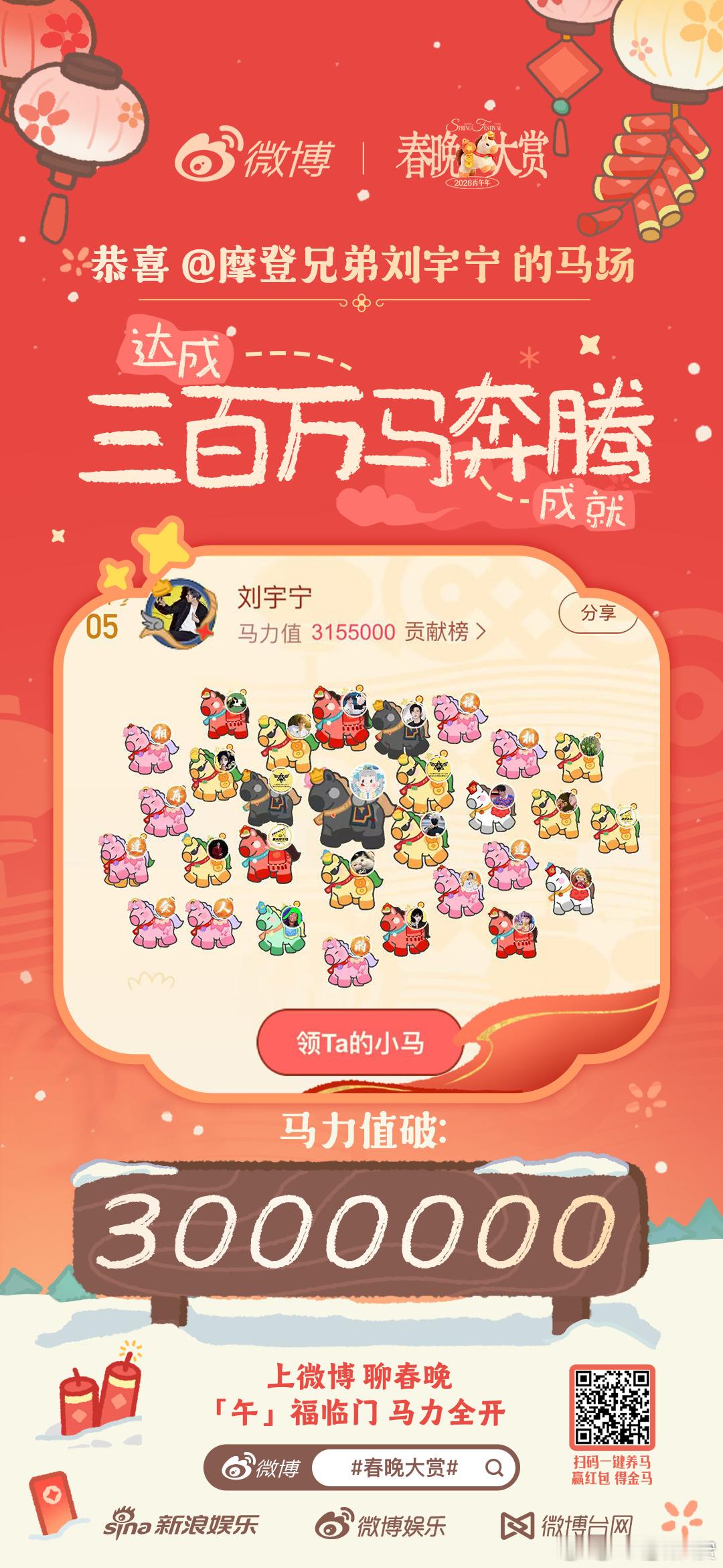 我已参与春晚大赏「午」福临门 马力全开,快来和我一起养马,还有机会获得纯金小马,赢百万明星红包! !