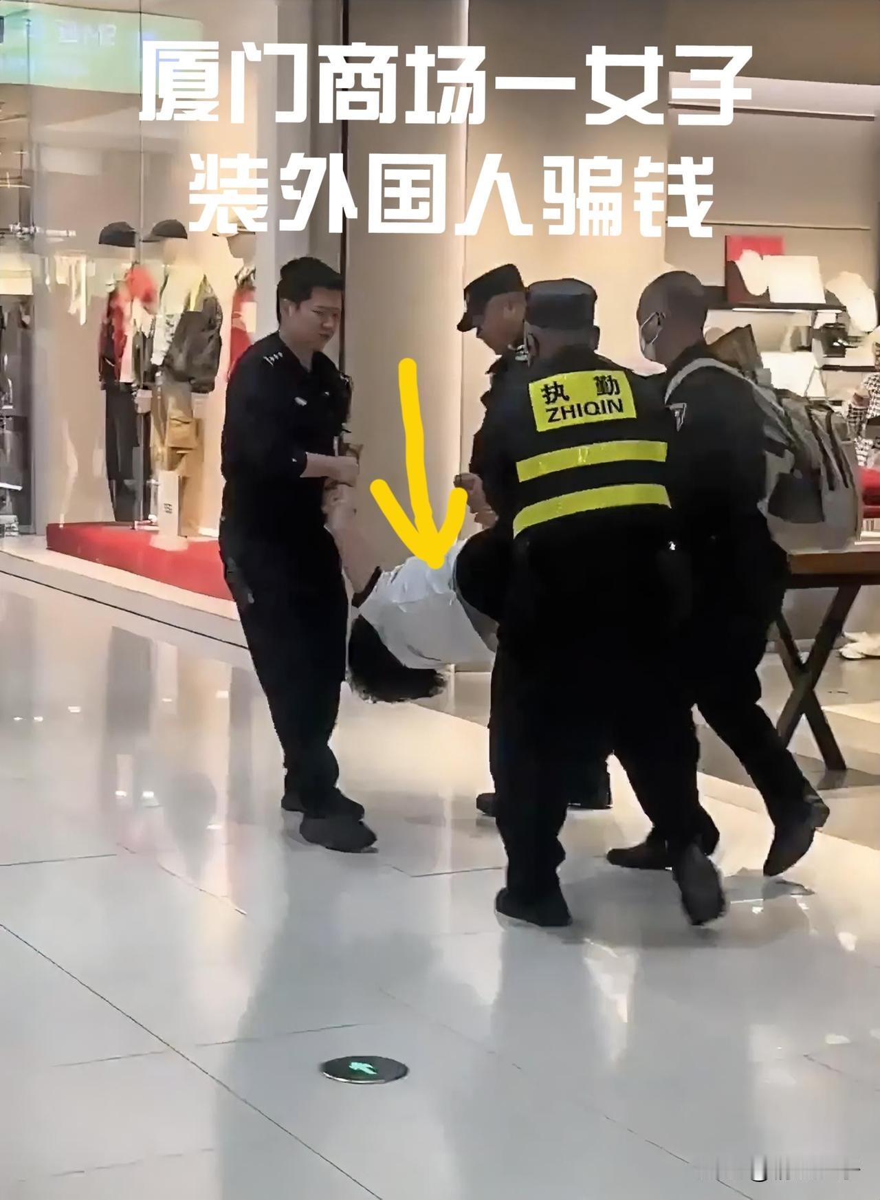 厦门商场出了个"怪女子"[笑哭]!明明她是中国人,却装外国人向路人讨钱[思考]。 有网友发了段视频,说2月5日的厦门,有位女子在商场。用英语跟路人打招呼,说她是美国人没钱吃饭[灵光一闪]。 随后娴熟地亮出收款码,让路人给她扫码[捂脸]。谁知周围人都信了她说的!以为这个外国友人,真遇到了麻烦,于是帮她报了警。 民警到现场检查,从她包里翻出中国身份证[震惊]。这下全都明白了,原来她是装外国人骗钱的。 但她继续"坚持表演",就是不说中文。还跟民警较上劲,民警好话说尽也没用,最后强制把她带离[笑哭]。 她演戏骗人们同情,消耗了别人的善意,实在太不道德[思考]。这事你是咋看的?评论区说下你的看法吧[灵光一闪]。 聊热点