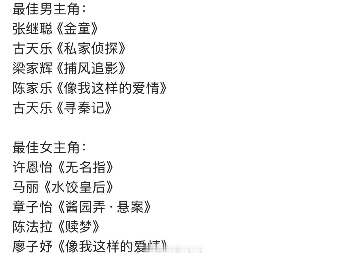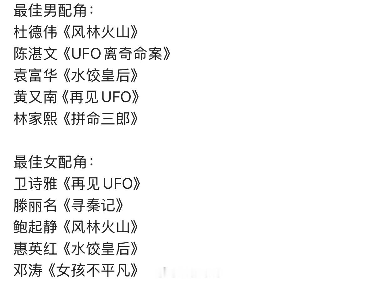 第44届香港金像奖最佳男女主角提名、最佳男女配角提名来了,杨幂赵丽颖都没有拿到提名了……🙉金像奖提名
